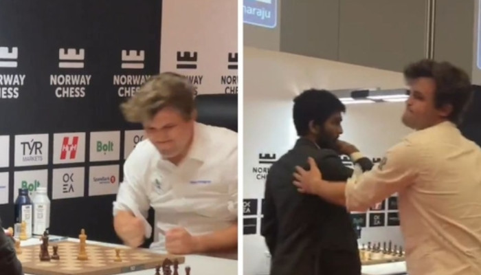 അതേസമയം പരാജയത്തിന് ശേഷം കാള്സന് ചെസ് ബോര്ഡ് വച്ച മേശയില് അടിച്ച് ദേഷ്യം തീര്ത്തത് വിവാദമായി. ഗുകേഷിന് ഹസ്തദാനം നല്കുന്നതിന് തൊട്ടുമുമ്പായിരുന്നു സംഭവം. ഇതിന് ശേഷം ഗുകേഷിന് ഹസ്തദാനം നൽകി കാള്സന് മടങ്ങുകയും ചെയ്തു. സംഭവത്തില് കാള്സന് ഖേദപ്രകടനം നടത്തിയതായി റിപ്പോര്ട്ടുണ്ട്.