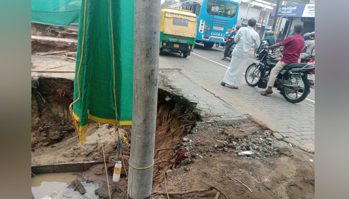 വി പി റോഡിന് സമീപത്ത് പഴയ ബസ് കാത്തിരിപ്പു കേന്ദ്രം നിന്നിരുന്ന ഭാഗത്ത് എടുത്ത കുഴിയിലേക്ക് റോഡിനോട് ചേർന്ന മണ്ണും ഇടിഞ്ഞു വീഴുന്നുണ്ട്. വി പി റോഡ് നവീകരണത്തിൻ്റെ ഭാഗമായി സ്ഥാപിച്ച നടപ്പാതയുടെ ടൈലുകൾ ഇളകിമാറുന്ന നിലയിലേക്ക് മണ്ണിളക്കം വഴിവെച്ചിട്ടുണ്ട്. കിഴക്കുഭാഗത്തെ സ്വകാര്യ വ്യക്തിയുടെ ചുറ്റുമതിലിനും കെട്ടിടത്തിനും കുഴികൾ ഭീഷണിയായി മാറിയിരിക്കുകയാണ്. ഷോപ്പിംഗ് കോംപ്ലക്സ് നിർമ്മാണത്തിൽ കരാറുകാരൻ പാലിക്കേണ്ട മുൻകരുതൽ എടുപ്പിക്കാൻ പഞ്ചായത്ത് തയ്യാറാവണമെന്ന് സിപിഐ നായരമ്പലം ലോക്കൽ കമ്മറ്റി സെക്രട്ടറി എൻ കെ സജീവൻ ആവശ്യപ്പെട്ടു.