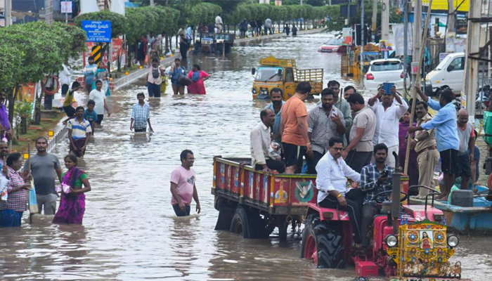 വിജയവാഡ തെരുവുകളിൽ ശക്തമായ പ്രളയം;3 മണിക്കൂറിനുള്ളിൽ കയറിയത് 4 അടി വെള്ളം