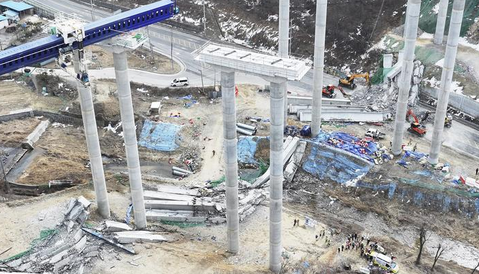 ദക്ഷിണ കൊറിയയിൽ നിർമ്മാണത്തിലിരിക്കുന്ന ഹൈവേയുടെ ഉയർന്ന ഭാഗങ്ങൾ തകർന്നുവീണ് നാല് തൊഴിലാളികൾ മരിച്ചു. ആറ് പേർക്ക് പരിക്കേറ്റു. സിയോളിൽ നിന്ന് ഏകദേശം 90 കിലോമീറ്റർ അകലെ ചിയോനാൻ നഗരത്തിലാണ് സംഭവം. അപകടം നടക്കുമ്പോള്‍ 10 തൊഴിലാളികളാണ് സംഭവസ്ഥലത്ത് ഉണ്ടായിരുന്നതെന്ന് അധികൃതര്‍ പറഞ്ഞു. ഹൈവേ തകര്‍ന്നപ്പോള്‍ തൊഴിലാളികളെല്ലാം അവശിഷ്ടങ്ങൾക്കിടയിൽ കുടുങ്ങുകയായിരുന്നു. തൊഴിലാളികളെ രക്ഷിക്കാൻ ലഭ്യമായ എല്ലാ ഉദ്യോഗസ്ഥരെയും ഉപകരണങ്ങളും സജ്ജമാക്കണമെന്ന് ആക്ടിംഗ് പ്രസിഡന്റ് ചോയി സാങ്-മോക് അധികാരികളോട് ആവശ്യപ്പെട്ടു.