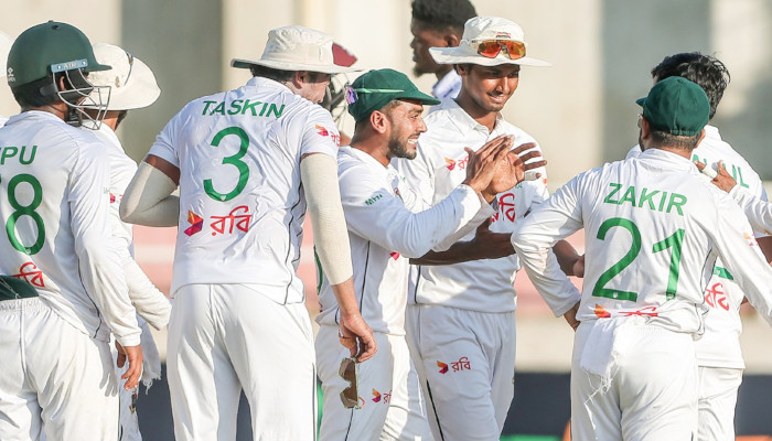 ആദ്യ ഇന്നിങ്സില് 164 റണ്സിന് ബംഗ്ലാദേശ് ഓള്ഔട്ടായി. 64 റണ്സെടുത്ത ഷദ്മാന് ഇസ്ലാമാണ് ടോപ് സ്കോറര്. എന്നാല് മറുപടി ബാറ്റിങ്ങില് ലീഡ് മോഹവുമായിറങ്ങിയ ആതിഥേയര് 146 റണ്സിന് ഓള്ഔട്ടാകുകയായിരുന്നു. 40 റണ്സെടുത്ത കെസി കാര്ട്ടി, 39 റണ്സെടുത്ത ക്യാപ്റ്റന് ക്രെയ്ഗ് ബ്രാത്വെയ്റ്റ് എന്നിവര് മാത്രമാണ് രണ്ടക്കം കണ്ടവര്. ബംഗ്ലാദേശിനായി നഹിദ് റാണ അഞ്ച് വിക്കറ്റ് നേടി.