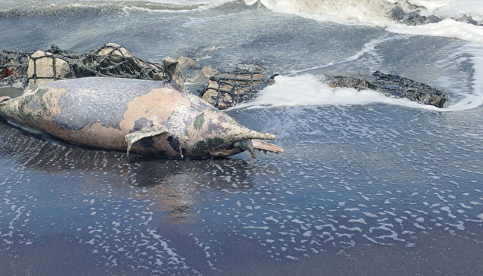 ആറാട്ടുപുഴയില്‍ കണ്ടെയ്നര്‍ അടിഞ്ഞ തറയില്‍ കടവില്‍ ഡോള്‍ഫിന്റെ ജഡം കണ്ടെത്തി