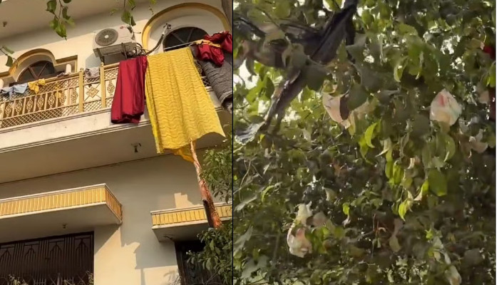 ഉത്തര്പ്രദേശിലെ വാരാണസിയില് ഒരു കുടുംബം ഡയപ്പറുകള് സംസ്കരിക്കാതെ അടുത്ത വീട്ടിലേക്ക് വലിച്ചെറിയുന്ന ദൃശ്യങ്ങള് സമൂഹമാധ്യമത്തില് വൈറലാവുകയാണ്. ഉപയോഗിച്ച ഡയപ്പറുകൾ കൊണ്ട് നിറഞ്ഞ ഒരു മരമാണ് വീഡിയോയിൽ. ഇൻഫ്ലുവൻസർ ശ്വേത കതാരിയയാണ് ഈ വീഡിയോ ഇൻസ്റ്റാഗ്രമിലൂടെ പങ്കുവയ്ക്കുകയായിരുന്നു.