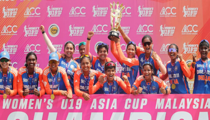 പ്രഥമ അണ്ടര് 19 വനിതാ ഏഷ്യാ കപ്പ് ക്രിക്കറ്റില് ഇന്ത്യക്ക് കിരീടം. ഫൈനലില് ബംഗ്ലാദേശിനെ 41 റണ്സിന് തോല്പിച്ചാണ് ഇന്ത്യയുടെ കിരീടം. ഇന്ത്യ ഉയര്ത്തിയ 118 റണ്സ് വിജയലക്ഷ്യം പിന്തുടര്ന്ന ബംഗ്ലാദേശ് 76 റണ്സെടുക്കുന്നതിനിടെ പുറത്തായി. 47 പന്തിൽ 52 റൺസെടുത്തു തിളങ്ങിയ ഇന്ത്യൻ താരം ഗൊങ്കടി തൃഷയാണ് കളിയിലെ താരം. ടോസ് നേടിയ ബംഗ്ലാദേശ് ഇന്ത്യയെ ബാറ്റിങ്ങിനയക്കുകയായിരുന്നു.