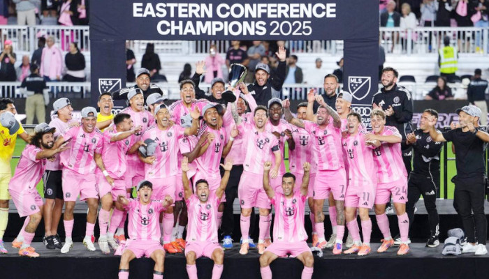 എംഎൽഎസ് ഈസ്റ്റേൺ കോൺഫറൻസ് കിരീടം ഇന്റര് മിയാമിക്ക്. ന്യൂയോർക്ക് സിറ്റി എഫ്സിയെ പരാജയപ്പെടുത്തിയാണ് ഇന്റർ മിയാമി ആദ്യമായി മേജർ ലീഗ് സോക്കർ (എംഎൽഎസ്) കിരീടത്തില് മുത്തമിടുന്നത്. ന്യൂയോര്ക്ക് സിറ്റിയെ ഒന്നിനെതിരെ അഞ്ച് ഗോളുകള്ക്കാണ് മിയാമി തോല്പിച്ചത്. ടാഡിയോ അലെന്ഡോയുടെ ഹാട്രിക്കാണ് മിയാമിക്ക് മികച്ച വിജയമൊരുക്കിയത്.