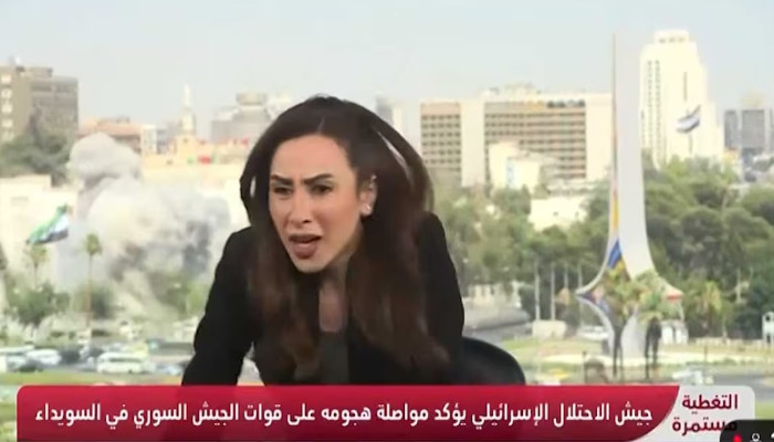 സിറിയയിൽ ഇസ്രയേൽ വ്യോമാക്രമണം നടത്തിയപ്പോൾ വാർത്താ വായനക്കിടയിൽ ഓടി രക്ഷപെട്ട് അവതാരക. സിറിയിലെ ഔദ്യോഗിക ടിവി ചാനലിൽ വാർത്ത വായിക്കുന്നതിനിടെ പിന്നിൽ സ്ഫോടനം നടക്കുന്നത് കാണാം. തുടർന്ന് വാർത്താ അവതരാക ഓടി രക്ഷപ്പെടുന്നതും ദൃശ്യങ്ങളിലുണ്ട്. ഡമാസ്കസിലെ പ്രതിരോധ മന്ത്രാലയം ഉൾപ്പെടെയുള്ള പ്രധാന സർക്കാർ കെട്ടിടങ്ങൾ കേന്ദ്രീകരിച്ചാണ് ഇസ്രയേൽ വ്യോമാക്രമണം.സിറിയന് തലസ്ഥാനമായ ഡമാസ്കസിലെ സൈനിക ആസ്ഥാനത്തിന് നേരെ ഇസ്രയേല് വ്യോമാക്രമണം നടത്തിയിരുന്നു.