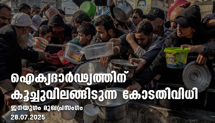 ഗാസയിലെ കൊടിയ പട്ടിണി മരണങ്ങൾക്കും ഇസ്രയേൽ തുടർന്നുവരുന്ന ഉന്മുലന യുദ്ധത്തിനും എതിരെ പലസ്തീൻ ജനതയോട് ഐക്യദാർഢ്യം പ്രഖ്യാപിച്ച് സിപിഐ, സിപിഐ(എം) എന്നിവയുൾപ്പടെ ഇടത് പാർട്ടികളും സമാധാന ഐക്യദാർഢ്യ സംഘടനകളും ആഹ്വാനംചെയ്ത റാലിക്ക് അനുമതി നിഷേധിച്ച പോലീസ് നടപടിക്കെതിരെ നൽകിയ പരാതി നിരസിച്ച ബോംബെ ഹൈക്കോടതി നടപടി അപലപനീയവും മാനവികതയുടെ നിരാസവുമാണ്. ‘രാജ്യസ്നേഹമുള്ളവർ ആയിരിക്കണമെന്നും, ഇന്ത്യയെ ബാധിക്കുന്ന പ്രശ്നങ്ങളിൽ ശ്രദ്ധ കേന്ദ്രീകരിക്കണമെന്നും’ ആവശ്യപ്പെട്ടുകൊണ്ടാണ് കോടതി പരാതി നിരസിച്ചത്. ഗാസയുടെമേൽ ഇസ്രയേൽ അടിച്ചേൽപ്പിച്ച പട്ടിണി മരണങ്ങളെയും അവിടെ തുടർന്നുവരുന്ന ഉന്മുലനയുദ്ധത്തെയും വിശാല മാനവികതയുടെ അടിസ്ഥാനത്തിൽ ഉള്ക്കൊള്ളുന്നതിലും, ഇത്തരം സന്ദർഭങ്ങളിൽ ആരോഗ്യകരമായ ജനാധിപത്യത്തിൽ പൗരസമൂഹം എങ്ങിനെ പ്രവർത്തിക്കണമെന്ന് മനസിലാക്കുന്നതില് കോടതിക്കുണ്ടായ വീഴ്ചയുമാണ് ഹൈക്കോടതിയുടെ നിരാസം തുറന്നുകാണിക്കുന്നത്. ഏതാണ്ട് ഇരുപത്തിയൊന്ന് മാസങ്ങളായി ഗാസയിൽ തുടർന്നുവരുന്ന ഉന്മൂലനയുദ്ധത്തോടുള്ള ലോകരാഷ്ട്രങ്ങളുടെയും ജനതയുടെയും സമീപനത്തിൽ വലിയ വ്യതിയാനമാണ് സമീപകാലത്ത് ഉണ്ടായിട്ടുള്ളത്. ഇക്കാലമത്രയും ഇസ്രയേലിനെ ശക്തമായി പിന്തുണച്ചുപോന്നിരുന്ന ബ്രിട്ടൺ, ഫ്രാൻസ്, ജർമ്മനി തുടങ്ങിയ പാശ്ചാത്യശക്തികൾ ഗാസയിൽ അരങ്ങേറുന്ന മാനുഷിക ദുരന്തങ്ങളുടെ പശ്ചാത്തലത്തിൽ തങ്ങളുടെ നിലപാട് മാറ്റാൻ നിർബന്ധിതമായി. ആഗോള മാധ്യമ കുത്തക ഏജൻസികളായ ബിബിസി, എഎഫ്പി, എപി, റോയിട്ടേഴ്സ് തുടങ്ങിയവ ഒരു സംയുക്ത പ്രസ്താവനയിലൂടെ തങ്ങൾക്ക് വാർത്തകൾ നൽകുന്ന മാധ്യമപ്രവർത്തകരും അവരുടെ കുടുംബങ്ങളും നേരിടുന്ന പട്ടിണിദുരിതത്തിന്റെ ദയനീയചിത്രം ലോകത്തിനുമുമ്പിൽ തുറന്നുകാട്ടി. ലോകരാഷ്ട്രങ്ങളും ആഗോളമാധ്യമങ്ങളും അവഗണിക്കാൻ ശ്രമിച്ച വലിയൊരു മാനുഷിക ദുരന്തത്തിന്റെ ചിത്രമാണ് അങ്ങനെ ലോകത്തിന്റെ ശ്രദ്ധകേന്ദ്രമാകുന്നത്. ഈ പശ്ചാത്തലത്തിൽവേണം ഗാസയോടും പലസ്തീൻ ജനതയോടുമുള്ള ഇന്ത്യയുടെ സമീപനവും ബോംബെ ഹൈക്കോടതിയുടെ അങ്ങേയറ്റം പ്രതിലോമകരമായ നിലപാടും പരിശോധനാ വിധേയമാകേണ്ടത്.