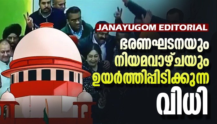 രാജ്യത്തിന്റെ നീതിന്യായ വ്യവസ്ഥയിൽ ജനങ്ങൾക്കുള്ള വിശ്വാസം അതിന്റെ നെല്ലിപ്പലകയോട് അടുത്തിരിക്കെയാണ് സുപ്രീം കോടതിയുടെ ചണ്ഡീഗഢ് മേയർ തെരഞ്ഞെടുപ്പ് സംബന്ധിച്ച നിർണായകവിധി പുറത്തുവന്നിരിക്കുന്നത്. അതിന് ഏതാനും ദിവസങ്ങൾക്ക് മുമ്പ് മാത്രമാണ് തെരഞ്ഞെടുപ്പ് ബോണ്ട് വിഷയത്തിൽ സുപ്രീം കോടതി മറ്റൊരു സുപ്രധാന വിധിപ്രസ്താവം നടത്തിയത്. ഇരു വിധിപ്രസ്താവനകളും ഭരണത്തിൽ പിടിമുറുക്കാൻ ഭരണഘടനാവിരുദ്ധവും രാഷ്ട്രീയ ധാർമ്മികതയ്ക്ക് നിരക്കാത്തതുമായ എന്തുമാർഗവും അവലംബിക്കാൻ യാതൊരു മടിയുമില്ലാത്ത ബിജെപിക്ക് ഏറ്റ കനത്ത തിരിച്ചടികളാണ്. അതിലുപരി ഭരണഘടനയുടെയും നിയമവാഴ്ചയുടെയും സംരക്ഷകരും സത്യത്തിനും നീതിക്കുംവേണ്ടിയുള്ള പൗരന്മാരുടെ അവസാനത്തെ ആശ്രയവുമായി ജനങ്ങൾ നോക്കിക്കണ്ടിരുന്ന ഏക ഭരണഘടനാ സ്ഥാപനമായ സുപ്രീം കോടതിയിലുള്ള വിശ്വാസം അല്പമെങ്കിലും വീണ്ടെടുക്കാൻ ഈ വിധികൾ ഏറെ സഹായകമായി എന്നുവേണം വിലയിരുത്താൻ.