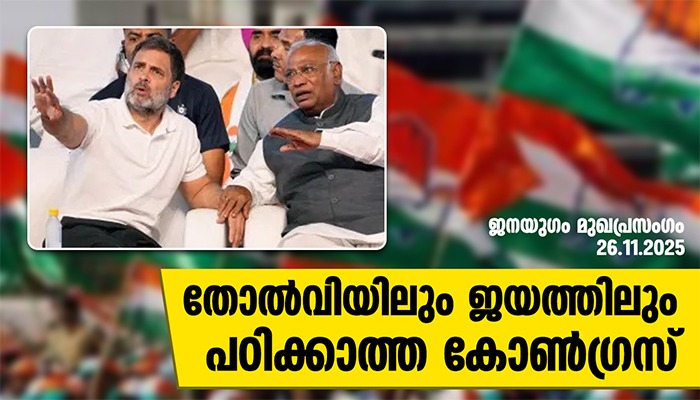 തോൽവികളിൽ നിന്ന് പാഠം പഠിക്കാത്ത ലോകത്തെ ഏക രാഷ്ട്രീയ കക്ഷിയായിരിക്കും ഇന്ത്യൻ നാഷണൽ കോൺഗ്രസ്. ജനങ്ങൾ കനിഞ്ഞു നൽകുന്ന വിജയത്തെ മാനിക്കാനും അവർ തയ്യാറാകാറില്ല. കനത്ത പരാജയം ഏറ്റുവാങ്ങിയ ബിഹാറും ജനം ജയിപ്പിച്ച് അധികാരത്തിലുള്ള കർണാടകയുമാണ് അതിന്റെ അവസാനത്തെ ഉദാഹരണങ്ങൾ. ബിഹാറിലെ തോൽവിക്ക് സാങ്കേതികമായി മറുപടി നൽകാൻ കോൺഗ്രസിനും ഇന്ത്യ സഖ്യകക്ഷികൾക്കും കാരണങ്ങളേറെയുണ്ട്. അതിൽ പ്രധാനം വോട്ട് മോഷണം തന്നെയാണ്. അതല്ലാതെ ബിഹാറിലെ എൻഡിഎ സഖ്യത്തിന് ഇതുപോലൊരു തൂത്തുവാരലിനുള്ള സാഹചര്യങ്ങൾ ഒന്നുംതന്നെ നിലവിലുണ്ടായിരുന്നില്ല. ഭരണത്തിന്റെ തണലിൽ സംസ്ഥാനത്തിന്റെ സാമ്പത്തിക സ്ഥിതി പരിഗണിക്കാതെ ലക്ഷക്കണക്കിന് സ്ത്രീകളുടെ അക്കൗണ്ടുകളിലേക്ക് നേരിട്ട് പണം നൽകി സ്വാധീനിക്കുവാനും അവർക്ക് സാധിച്ചു.