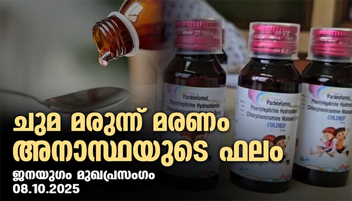 പർശ്വഫലങ്ങൾ പരിഗണിക്കാതെയുള്ള മരുന്നുകളുടെ ഉപയോഗകാര്യത്തിൽ കേന്ദ്രസർക്കാർ വേണ്ടത്ര ഗൗരവം പുലർത്തുന്നില്ലെന്ന് പല തവണ തെളിഞ്ഞിട്ടുള്ളതാണ്. പ്രധാനമായും ഇത് നാം കണ്ടത് കോവിഡ് കാലത്തായിരുന്നു. മതിയായ പരീക്ഷണങ്ങളൊന്നുമില്ലാതെ കോവിഡ് പ്രതിരോധ വാക്സിൻ വികസിപ്പിക്കുന്നതിന് നിർബന്ധിക്കുകയും അതിന്റെ പേരിൽ മേനി നടിക്കുകയും ചെയ്യുകയായിരുന്നു. പ്രസ്തുത വാക്സിന്റെ പാർശ്വഫലങ്ങളെക്കുറിച്ചുള്ള ആശങ്കകൾ ദൂരീകരിക്കുന്നതിന് ഇതുവരെ സാധ്യമായിട്ടുമില്ല. ഇപ്പോൾ കുട്ടികളുടെ മരണകാരണമായതുൾപ്പെടെ ചുമ മരുന്നുകളുടെ അപകട സാധ്യതകളെക്കുറിച്ച് ലോകാരോഗ്യ സംഘടന ഉൾപ്പെടെ മുന്നറിയിപ്പ് നൽകിയിട്ടും ആവശ്യമായ നടപടി സ്വീകരിക്കുവാൻ കേന്ദ്ര സർക്കാർ തയ്യാറായതുമില്ല. എന്നുമാത്രമല്ല ചില സംസ്ഥാനങ്ങളിലെ ആരോഗ്യവകുപ്പ് അധികൃതർ വിഷയത്തെ ഗൗരവത്തോടെ കാണുന്നതിന് പകരം വിദഗ്ധ സമിതികളുടേത് എന്ന പേരിൽ ചില റിപ്പോർട്ടുകൾ പുറത്തുവിട്ട് ലഘൂകരിക്കുന്നതിനും ശ്രമിക്കുകയാണ്. മരുന്ന് ഉപയോഗിച്ചതിന്റെ പാർശ്വഫലമായുണ്ടായ രോഗം കാരണമുള്ള മരണങ്ങളെ അതിന്റെ ഗണത്തിൽപ്പെടുത്തി കമ്പനികളെ വെള്ളപൂശുന്നതിനും ശ്രമമുണ്ടാകുന്നു. ഇതെല്ലാം കൊണ്ടുതന്നെ ഇപ്പോഴുണ്ടായിരിക്കുന്ന മരണങ്ങൾ അധികൃതരുടെ ഭാഗത്തുനിന്നുണ്ടായ ഗുരുതര അനാസ്ഥയുടെ ഫലമാണെന്നതിൽ തർക്കമില്ല. ഇനിയെങ്കിലും ഇത്തരം വീഴ്ചകളുണ്ടാകാതിരിക്കാനുള്ള കർശന നടപടികൾ അനിവാര്യമാണ്.
