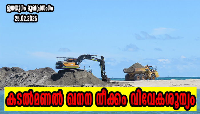 കേന്ദ്ര സർക്കാരിന്റെ കടൽമണൽ ഖനനപദ്ധതി അറുനൂറിൽപരം കിലോമീറ്റർ ദൈർഘ്യമുള്ള കേരളത്തിന്റെ തീരദേശത്തെയോ രണ്ടരലക്ഷത്തില്പരം വരുന്ന മത്സ്യബന്ധന, അനുബന്ധ തൊഴിലുകളില് ഏർപ്പെട്ടിട്ടുള്ളവരെയോ തീരദേശ ജനസമൂഹങ്ങളെയോ മാത്രം ബാധിക്കുന്ന പ്രശ്നമല്ല. കേരളത്തിന്റെ പരിസ്ഥിതി, ആവാസവ്യവസ്ഥ, തീരദേശ ഭൂപ്രകൃതിയുടെ നിലനില്പ്, കേരളജനതയുടെ ഭക്ഷ്യസുരക്ഷ, സംസ്ഥാനത്തിന്റെ സമ്പദ്ഘടന എന്നിവകളുടെമേൽ ഗുരുതര പ്രത്യാഘാതം സൃഷ്ടിച്ചേക്കാവുന്ന വെല്ലുവിളിയാണ്. കേരളത്തിന്റെ തീരസമുദ്രത്തെ പൊന്നാനി, ചാവക്കാട്, ആലപ്പുഴ, കൊല്ലം വടക്ക്, കൊല്ലം തെക്ക് എന്നിങ്ങനെ അഞ്ചുഭാഗങ്ങളായി തിരിച്ച് അവിടെനിന്നും സ്വകാര്യ പങ്കാളിത്തത്തോടെ 745 ദശലക്ഷം ടൺ കടൽമണൽ ഖനനം ചെയ്യാനുള്ള ടെൻഡർ നടപടികളാണ് ആരംഭിച്ചിട്ടുള്ളത്. കേന്ദ്ര സർക്കാരിന്റെ ‘ബ്ലൂ ഇക്കോണമി’ പദ്ധതിയുടെ ഭാഗമായ നിർദിഷ്ട കടൽമണൽ ഖനനത്തിന്റെ ആദ്യ ഇരകളായി മാറുന്ന മത്സ്യത്തൊഴിലാളികളുടെ വിവിധ യൂണിയനുകളുടെ സംയുക്ത ആഭിമുഖ്യത്തിൽ ഫെബ്രുവരി 27ന് തീരദേശ ഹർത്താലിന് ആഹ്വനം ചെയ്തിട്ടുണ്ട്. ഇത് കേവലം മത്സ്യത്തൊഴിലാളികളെ മാത്രം ബാധിക്കുന്ന പ്രശ്നമല്ലെന്നതുകൊണ്ട് കക്ഷിരാഷ്ട്രീയത്തിനും മത, സാമുദായിക വൈജാത്യങ്ങൾക്കും അതീതമായ പിന്തുണ ഹർത്താലിന് ലഭിച്ചിട്ടുണ്ട്. പ്രശ്നത്തിന്റെ ഗൗരവം ഉൾക്കൊണ്ട് കടൽമണൽ ഖനത്തിനെതിരെ സംസ്ഥാനസർക്കാരും തങ്ങളുടെ നിലപാട് അസന്ദിഗ്ധ ഭാഷയിൽ വ്യക്തമാക്കിയിട്ടുണ്ട്. കടൽമണൽ ഖനനം സംബന്ധിച്ചു് സമഗ്രമായ പഠനങ്ങൾ ഒന്നുംതന്നെ പൂർത്തിയാക്കാതെ ജിയോളജിക്കൽ സർവേ ഓഫ് ഇന്ത്യയുടെ പ്രാഥമിക പഠനങ്ങളുടെ മാത്രം അടിസ്ഥാനത്തിലാണ് കേന്ദ്രസർക്കാർ ടെൻഡർ നടപടികളുമായി മുന്നോട്ടുപോകുന്നത്. സംസ്ഥാനത്തിന്റെ അധികാരപരിധിയിൽ വരുന്ന 22.22 കിലോമീറ്റർ തീരസമുദ്രത്തിലാണ് ഖനനം ആരംഭിക്കുന്നതെങ്കിലും ഇതുസംബന്ധിച്ച് സംസ്ഥാന സർക്കാരുമായി മതിയായ കൂടിയാലോചനകൾ യാതൊന്നും നടന്നിട്ടില്ലെന്നത് സംസ്ഥാനത്തിന്റെ അവകാശങ്ങളുടെമേലുള്ള കടന്നുകയറ്റമാണെന്നതും ശ്രദ്ധേയമാണ്.