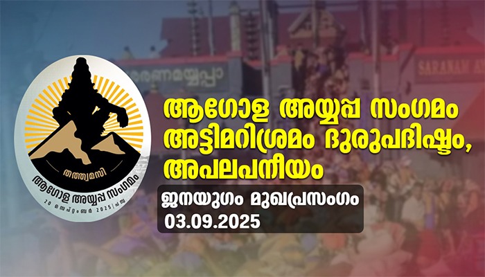 സെപ്റ്റംബർ 20ന് പമ്പയിൽ നടക്കുന്ന നിർദിഷ്ട ആഗോള അയ്യപ്പ സംഗമം കേരള രാഷ്ട്രീയത്തിലെ പുതിയ വിവാദ വിഷയമായി മാറിയിരിക്കുകയാണ്. തിരുവിതാംകൂർ ദേവസ്വം ബോര്‍ഡിന്റെ പ്ലാറ്റിനം ജൂബിലി ആഘോഷങ്ങളുടെ ഭാഗമായി നടക്കുന്ന സംഗമത്തെ വിശ്വാസികളും അവിശ്വാസികളുമായി ജനങ്ങളെ ഭിന്നിപ്പിക്കാനുള്ള തന്ത്രവും അവസരവുമാക്കി മാറ്റാനുള്ള കൊണ്ടുപിടിച്ചുള്ള ശ്രമങ്ങളാണ് വിവിധ കേന്ദ്രങ്ങളിൽ നടന്നുവരുന്നത്. പ്രതിവർഷം കോടാനുകോടി ഭക്തജനങ്ങൾ സന്ദർശിക്കുന്ന തീർത്ഥാടന കേന്ദ്രമാണ് ശബരിമല അയ്യപ്പക്ഷേത്രം. വർഷംതോറും അവിടേക്കെത്തുന്ന തീർത്ഥാടകരുടെ എണ്ണം വൻതോതിൽ വർധിച്ചുവരികയാണ്. അവർക്ക് ആവശ്യമായ അടിസ്ഥാന സൗകര്യം പമ്പയിലും സന്നിധാനത്തിലും മാത്രമല്ല സംസ്ഥാനത്തുടനീളം ഗണ്യമായി വർധിപ്പിക്കേണ്ടതുണ്ട്. ശബരിമല തീർത്ഥാടകർ കേരളത്തിൽ നിന്നുള്ളവർ മാത്രമല്ല. തമിഴ്‌നാട്, കർണാടക, ആന്ധ്രാപ്രദേശ്, തെലങ്കാന, ഗോവ, മഹാരാഷ്ട്ര തുടങ്ങിയ ദക്ഷിണേന്ത്യൻ സംസ്ഥാനങ്ങളിൽനിന്നും പതിനായിരക്കണക്കിന് തീർത്ഥാടകരാണ് മണ്ഡല പൂജക്കാലത്തും മറ്റ് പ്രതിമാസ ദർശനവേളകളിലും അവിടേക്ക് ഒഴുകിയെത്തുന്നത്. ഉത്തരേന്ത്യൻ സംസ്ഥാനങ്ങളിൽനിന്നും സിംഗപ്പൂർ, മലേഷ്യ തുടങ്ങി ദക്ഷിണേന്ത്യൻ വംശജർ ഏറെയുള്ള വിദേശ രാജ്യങ്ങളിൽനിന്നും ധാരാളം ഭക്തർ ശബരിമല തീർത്ഥാടനത്തിനായി എത്തുന്നതും പതിവായിരിക്കുന്നു. ഈ തീർത്ഥാടകർക്ക് സൗകര്യപൂർവം യാത്രചെയ്യുന്നതിനും ദർശനവും വഴിപാടുകളും നടത്തുന്നതിനും ആവശ്യമായ അടിസ്ഥാനസൗകര്യ വികസനം ദേവസ്വത്തിന്റെയും സംസ്ഥാന സർക്കാരിന്റെയും ഉത്തരവാദിത്തമാണ്. അക്കാര്യങ്ങളിൽ ദേവസ്വവും സർക്കാരും ഇതിനകം കൈക്കൊണ്ടിട്ടുള്ള നടപടികളും ഭാവി പദ്ധതികളും അറിയിക്കുന്നതിനും തീർത്ഥാടകരുടെയും ശബരിമല വികസനത്തിൽ താല്പര്യമുള്ളവരുടെയും അഭിപ്രായം ആരായുകയെന്നതും സംഗമത്തിന്റെ പ്രഖ്യാപിത ലക്ഷ്യമാണ്. ശബരിമല വിമാനത്താവളം, റെയിൽവേ, അനുബന്ധ പ്രദേശങ്ങളുടെ വികസനം എന്നിവയും സംഗമത്തിന്റെ പരിഗണനാ വിഷയങ്ങളാവും. ശബരിമല ക്ഷേത്രത്തിലെ ആചാരങ്ങളോ വിശ്വാസങ്ങളോ ഈ സംഗമത്തിന്റെ പരിഗണനാ വിഷയമേ അല്ലെന്ന് തിരുവിതാംകൂർ ദേവസ്വം ബോർഡും കേരള സർക്കാരും അസന്നിഗ്ധമായി പ്രഖ്യാപിച്ചിട്ടുമുണ്ട്. വസ്തുത ഇതായിരിക്കെ ആഗോള അയ്യപ്പ സംഗമത്തെ വിശ്വാസികളും അവിശ്വാസികളും തമ്മിലുള്ള സംഘർഷമാക്കി മാറ്റാൻ നടത്തുന്ന ശ്രമങ്ങൾ ദുരുപദിഷ്ടവും അപലപനീയവുമാണ്.