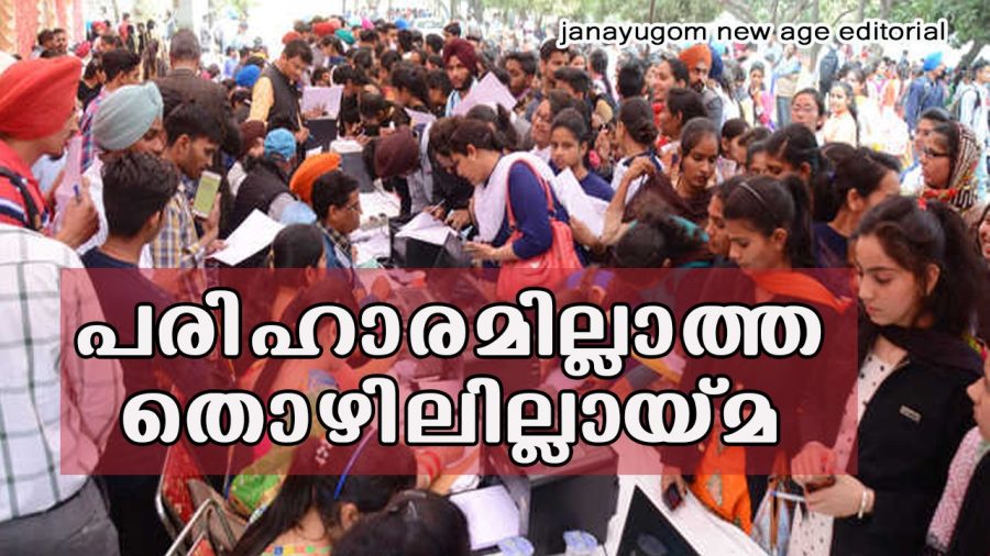 രാജ്യത്ത് തൊഴിലില്ലാത്തവരുടെ എണ്ണം 40 കോടിയിലേറെയായിരിക്കുന്നു. വറുതിയുടെ കരിംഭൂതങ്ങള് സാധാരണ കുടുംബങ്ങളെ ചുറ്റിയിരിക്കുന്നു. അത്ഭുതംപോലെ വീണുകിട്ടുന്ന തൊഴില്ദിനങ്ങളില് നിന്നുള്ള വരുമാനം കൊണ്ട് ജീവിതം അരിഷ്ടിച്ചുനീങ്ങുകയാണ്. പക്ഷെ, ഭരണകൂടമാകട്ടെ തൊഴിലില്ലായ്മാ നിരക്ക് കുറയുന്നുവെന്ന് ആവര്ത്തിച്ച് അവകാശപ്പെടുന്നു. ആനുകാലിക ലേബർ ഫോഴ്സ് സർവേ ഡാറ്റ പോലും 2022–23 കാലയളവിൽ തൊഴിലില്ലായ്മ നിരക്ക് 3.1 ശതമാനമായി കുറഞ്ഞതായി സൂചിപ്പിച്ചു. എന്നാല് സെന്റര് ഫോര് മോണിറ്ററിങ് ഇന്ത്യന് ഇക്കണോമിയുടെ കണക്കുകള് വ്യക്തമാക്കുന്നത് തൊഴിലില്ലായ്മ എട്ട് ശതമാനത്തിനടുത്താണെന്നാണ്. ന്യൂഡൽഹിയിൽ നടന്ന രാജ്യാന്തര തൊഴില്സംഘടനയുടെയും (ഐഎൽഒ) ഇൻസ്റ്റിറ്റ്യൂട്ട് ഫോർ ഹ്യൂമൻ ഡെവലപ്മെന്റിന്റെയും (ഐഎച്ച്ഡി) സംയുക്ത പ്രസിദ്ധീകരണമായ “ഇന്ത്യ എംപ്ലോയ്മെന്റ് റിപ്പോർട്ട് 2024: യൂത്ത് എംപ്ലോയ്മെന്റ്, എജ്യുക്കേഷൻ ആന്റ് സ്കിൽസ്” പുറത്തിറക്കിയ വേളയിൽ എല്ലാ പ്രശ്നങ്ങളും രാജ്യത്തിന് പരിഹരിക്കാൻ കഴിയുമെന്ന് പ്രതീക്ഷിക്കുന്നത് തെറ്റാണെന്ന് അടിവരയിട്ടിരുന്നു, പ്രത്യേകിച്ച് തൊഴിലില്ലായ്മ.