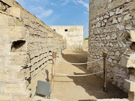 പുനഃരുദ്ധാരണ പ്രവർത്തനം ഏകദേശം പൂർത്തിയായ വീടുകൾ ഇവിടെയുണ്ട്. നഗരത്തിൽ ഉണ്ടായിരുന്ന മിക്ക വീടുകളുടെയും രൂപം ഒരുപോലെയായിരുന്നു. നൂറ്റാണ്ടുകൾക്ക് മുൻപും ഒരു അറബി വീട് ഒരു കോട്ട പോലെയായിരുന്നു. വലിയൊരു മതിൽക്കെട്ട് കൊണ്ട് അതിനെ മറ്റു കെട്ടിടങ്ങളിൽ നിന്നും വേർതിരിച്ചിരിക്കും. വലിയ കുടുംബങ്ങളാണ് ഇവിടെ ഓരോ വീട്ടിലും ഉണ്ടായിരുന്നത്. പുരുഷന്മാർക്ക് നാല് ഭാര്യമാർ വരെ ഉണ്ടായിരുന്നു. അവരും കുഞ്ഞുങ്ങളും ഒരേ വീട്ടിൽ തന്നെയാണ് താമസിച്ചിരുന്നത്. എത്രയോ കാലം മുമ്പ് ആളുകൾ വസിച്ചിരുന്ന കെട്ടിടങ്ങൾ, രണ്ടു നൂറ്റാണ്ടിനു മുൻപ് വരെ നിർമ്മിച്ചവ ഈ കൂട്ടത്തിലുണ്ട്. മരുഭൂമിയിലെ മണ്ണ് ഉണങ്ങിയ പുല്ലും ചേർത്ത് കുഴച്ച് വലിയ കട്ടകൾ ഉണ്ടാക്കി അതുകൊണ്ടായിരുന്നു അന്നും അവർ വീടുകൾ നിർമ്മിച്ചിരുന്നത്. ചരിത്രം പറയുന്ന ഒരു വില്ലേജായി രൂപപ്പെടുത്തി കൊണ്ടിരിക്കുകയാണ് ഇന്ന് പുരാവസ്തു വകുപ്പ്. കുഴമണ്ണും സിമന്റും ചേർത്താണ് ഇപ്പോൾ പുതുക്കി പണിയുന്നത്. പുറത്ത് എത്ര ചൂടാണെങ്കിലും ഇതിനകത്ത് തണുപ്പാണ്. പ്രത്യേകമായ ഒരു പരുക്കൻ സൗന്ദര്യം ഇതിനുണ്ട്. മരുഭൂമിയിലെ ഗോത്രവർഗക്കാരുടെ വീടുകളുടെ രൂപം ഇങ്ങനെയായിരുന്നു. അതിന് കൃത്യമായ അളവുകളോ വടിവുകളോ ഉണ്ടാകണമെന്നില്ല. ഭിത്തിയിൽ മുഴകളും വളവുകളും വാതിലുകൾക്ക് പല വലിപ്പവുമൊക്കെ സ്വാഭാവികം. പുതിയ കെട്ടിടത്തിന്റെ മച്ച്, മരക്കമ്പുകളും കണ്ടൽ ചുള്ളികളും പാകി അതിൻമേൽ കുഴമണ്ണ് നിരത്തി ഉണ്ടാക്കിയ സംവിധാനമാണ്. ഈ വീടുകൾക്കെല്ലാം വേനൽക്കാലത്ത് ചൂടുവായു പുറത്തു പോകുന്നതിനും തണുത്ത കാറ്റ് അകത്തു കടക്കുന്നതിനും പ്രത്യേകമായി നിർമ്മിച്ച ‘അൽദഹറസ്’ എന്നറിയപ്പെടുന്ന സംവിധാനം ഉണ്ടായിരുന്നു. കടലിൽ നിന്നും മുത്തുവാരലും അതിന്റെ വ്യാപാരവും ആയിരുന്നു ഈ നഗരത്തിലെ കൂടുതൽ പേരുടെയും ഉപജീവനമാർഗം. മുത്തുവാരലിലൂടെ സമ്പന്നരായ ഇവർ ഇവിടെ സുസജ്ജവും സ്വയം സമ്പൂർണവുമായ ഒരു പട്ടണമാണ് പടുത്തുയർത്തിയത്.