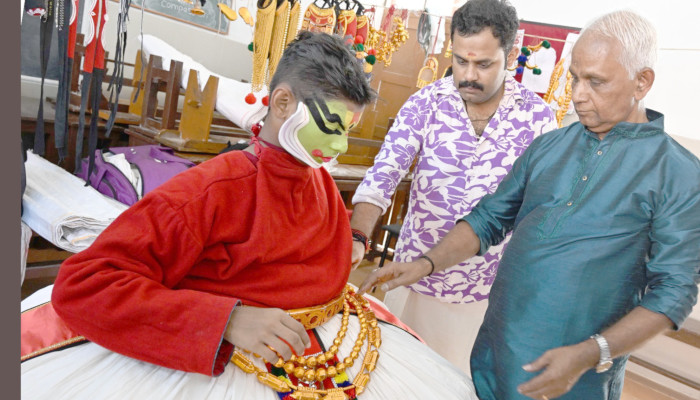 ഹൈസ്കൂൾ വിഭാഗം കഥകളിയിൽ മിന്നും പ്രകടനം കാഴ്ചവച്ച കെ എ അശ്വിൻ കൃഷ്ണന് ഇത് വെറും മത്സരയിനം മാത്രമല്ല, ജീവിതത്തിന്റെ ഭാഗം കൂടിയാണ്. ‘വാനപ്രസ്ഥം’ സിനിമയിൽ മോഹൻലാലിന്റെ ചെറുപ്പകാലം അഭിനയിച്ച് സിനിമയിലെത്തിയ അച്ഛൻ അരുൺബാബു, കഥകളി ആശാനായ മുത്തച്ഛൻ കലാനിലയം ബാലകൃഷ്ണൻ… അശ്വിന്റെ കഥകളി പൈതൃകം അത്രമേൽ സമ്പന്നമാണ്. ഇവർക്കൊപ്പം സഞ്ചരിക്കാനാണ് തനിക്കും ഇഷ്ടമെന്ന് തെളിയിക്കുകയാണ് അശ്വിൻ.