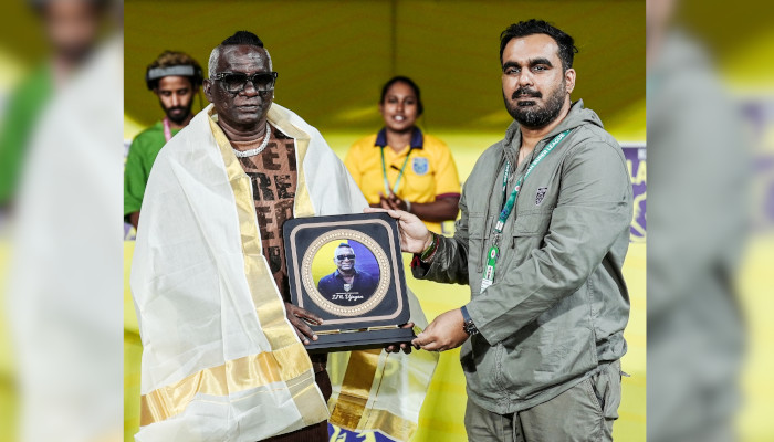 പത്മശ്രീ ഐ എം വിജയനെ ആദരിച്ച് കേരള ബ്ലാസ്റ്റേഴ്സ് എഫ്സി. മുൻ ഇന്ത്യൻ ഫുട്ബോൾ ടീം താരം കൂടിയായിരുന്ന ഐ എം വിജയന് രാജ്യം പത്മശ്രീ നൽകി ആദരിച്ച പുരസ്കാര നിറവിന്റെ ഭാഗമായാണ് കഴിഞ്ഞദിവസം കൊച്ചിയിൽ നടന്ന ഐഎസ്എൽ മത്സരത്തിന് മുന്നോടിയായി കേരള ബ്ലാസ്റ്റേഴ്സ് എഫ്സി സിഇഒ അഭിക് ചാറ്റർജി ഐ എം വിജയനെ പൊന്നാടയണിയിച്ച് ആദരിച്ചത്.