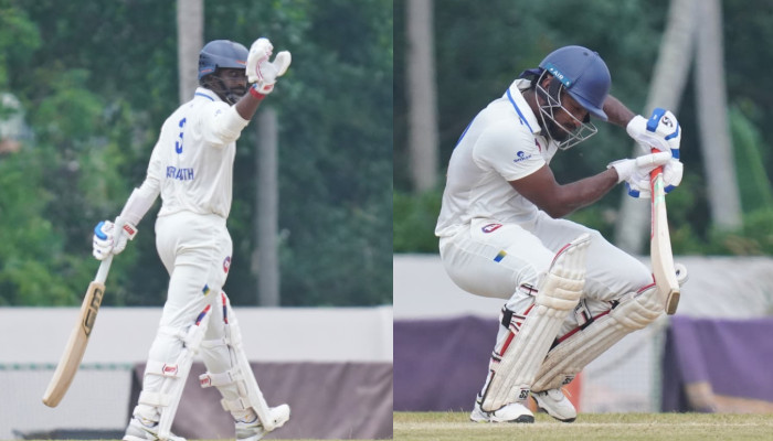 മറുവശത്ത് ഉറച്ച് നിന്ന ബാബ അപരാജിതും അഹ്മദ് ഇമ്രാനും ചേർന്ന് ഇന്നിങ്സ് മുന്നോട്ടു നീക്കി. ഇരുവരും ചേർന്ന് 68 റൺസ് നേടിയെങ്കിലും ബാബ അപരാജിത്ത് പുറത്തായതോടെ കേരളത്തിൻ്റെ തകർച്ചയ്ക്ക് തുടക്കമായി. 88 റൺസെടുത്ത അപരാജിത്തിനെ ശിഖർ ഷെട്ടിയാണ് പുറത്താക്കിയത്. തൊട്ടു പിറകെ 31 റൺസെടുത്ത അഹ്മദ് ഇമ്രാനും ആറ് റൺസെടുത്ത മൊഹമ്മദ് അസറുദ്ദീനും പുറത്തായി. 85 പന്തുകളിൽ നിന്ന് 29 റൺസുമായി ഷോൺ റോജർ ചെറുത്തു നിന്നെങ്കിലും വൈശാഖിൻ്റെ പന്തിൽ എൽബിഡബ്ല്യു ആയി മടങ്ങി. ആറ് റൺസെടുത്ത ഹരികൃഷ്ണനും പുറത്തായതോടെ കേരളത്തിൻ്റെ ഇന്നിങ്സിന് 238ൽ അവസാനമായി. ഏദൻ ആപ്പിൾ ടടോം 60 പന്തുകളിൽ നിന്ന് 10 റൺസുമായി പുറത്താകാതെ നിന്നു. കർണ്ണാടകയ്ക്ക് വേണ്ടി വിദ്വത് കവെരപ്പ നാലും വൈശാഖ് മൂന്നും ശിഖർ ഷെട്ടി രണ്ടും വിക്കറ്റുകൾ വീഴ്ത്തി. ഫോളോ ഓൺ ചെയ്ത് രണ്ടാം ഇന്നിങ്സ് ബാറ്റിങ് തുടങ്ങിയ കേരളത്തിന് വേണ്ടി കൃഷ്ണപ്രസാദും എം ഡി നിധീഷും ചേർന്നാണ് ഇന്നിങ്സ് തുറന്നത്. കളി നിർത്തുമ്പോൾ കൃഷ്ണപ്രസാദ് രണ്ടും നിധീഷ് നാലും റൺസുമായി ക്രീസിലുണ്ട്.