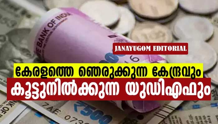 കേരളത്തെ സാമ്പത്തികമായി ഞെരുക്കുക എന്നത് കേന്ദ്ര സര്ക്കാര് മൃഗയാവിനോദം പോലെ ആവര്ത്തിച്ചുകൊണ്ടിരിക്കുകയാണ്. നിയമപരമായും ഫെഡറല് തത്വങ്ങളുടെ അടിസ്ഥാനത്തിലും അനുവദിക്കേണ്ട പല വിഹിതങ്ങളും തടഞ്ഞും പൊതുകടമെടുപ്പ് പരിധി വെട്ടിക്കുറച്ചും ദ്രോഹിച്ചുകൊണ്ടിരിക്കുന്ന കേന്ദ്രം ഒടുവില് ട്രഷറി നീക്കിയിരിപ്പില് നിന്ന് വായ്പ എടുക്കുന്നതിനുള്ള അനുമതിയാണ് നിഷേധിച്ചിരിക്കുന്നത്. സാമ്പത്തികവര്ഷം അവസാനിക്കുന്നതിന് രണ്ടു മാസം മാത്രം ബാക്കിയിരിക്കെ നിത്യനിദാന ചെലവുകള്ക്കൊപ്പം ഉണ്ടായേക്കാവുന്ന അധികബാധ്യത കൂടി കണക്കാക്കി 4,000 കോടി രൂപ ട്രഷറി നീക്കിയിരിപ്പില് നിന്ന് വായ്പയെടുക്കുന്നതിനുള്ള അനുമതിയാണ് സംസ്ഥാനം തേടിയത്. എന്നാല് നേരത്തെയുള്ള വായ്പാ കണക്കുകളും മറ്റും ഉയര്ത്തിക്കാട്ടി അനുമതി നിഷേധിക്കുകയാണ് ചെയ്തിരിക്കുന്നത്. വ്യവസ്ഥകളനുസരിച്ച് 10,000 കോടി രൂപ ഈ വിധത്തില് വായ്പയെടുക്കുന്നതിന് സാധിക്കുമെന്നിരിക്കെയാണ് ഈ അനുമതി നിഷേധം. പുറത്തുനിന്നുള്ള കടമെടുപ്പ് നേരത്തെ തന്നെ വിലക്കിയ കേന്ദ്രം വീണ്ടും സംസ്ഥാനത്തെ ദ്രോഹിക്കുന്ന സമീപനമാണ് സ്വീകരിച്ചിരിക്കുന്നത്. സാമ്പത്തിക വർഷത്തിന്റെ അവസാനപാദത്തിൽ 7,000 കോടി രൂപയെങ്കിലും വായ്പയിലൂടെ സമാഹരിക്കാമെന്നായിരുന്നു സംസ്ഥാനം പ്രതീക്ഷിച്ചിരുന്നത്. എന്നാല് 1,838 കോടി മാത്രം എടുക്കാനാണ് അനുമതി നൽകിയത്. തനത് വരുമാനം കഴിച്ചാല് വന് തുക അധികം വേണ്ടിവരുന്ന സമയമാണ് മാര്ച്ച് വരെയുള്ള സാമ്പത്തിക വര്ഷത്തിലെ അവസാനപാദം. മാർച്ചിൽ മാത്രം 20,000 കോടി ആവശ്യമായി വരുമെന്നാണ് ധനമന്ത്രി കെ എന് ബാലഗോപാല് കഴിഞ്ഞ ദിവസം പറഞ്ഞിരുന്നത്. ട്രഷറിയില് ഉൾപ്പെടെ നിക്ഷേപമായുള്ള പൊതുപണത്തിന്റെ കാരണം ചൂണ്ടിക്കാട്ടിയാണ് പൊതുവായ്പയെടുക്കുന്നതിന് വിലക്കേര്പ്പെടുത്തുന്നത്. എന്നാല് ട്രഷറി നിക്ഷേപത്തില് നിന്ന് വായ്പയെടുക്കാന് അനുവദിക്കാതെ ഇരട്ടത്താപ്പാണ് കേന്ദ്രം ഇപ്പോള് സ്വീകരിച്ചിരിക്കുന്നത്.