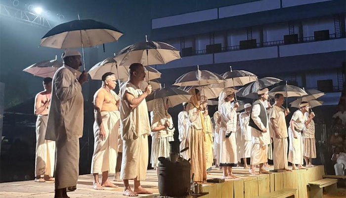 ഒ വി വിജയന്റെ ‘ഖസാക്കിന്റെ ഇതിഹാസം’ എന്ന കാലാതീതമായ കൃതിയെ ദീപൻ ശിവരാമൻ തൃക്കരിപൂർ കെഎംകെ കലാസമതിയിലൂടെ അരങ്ങിലെത്തിക്കുമ്പോൾ, മലയാള നാടകചരിത്രത്തിൽ സമാനതകളില്ലാത്ത ഒരു പുതിയ ദൃശ്യസംസ്കാരത്തിനാണ് അടിത്തറയിടുന്നത്. പരമ്പരാഗതമായ അടച്ചുറപ്പുള്ള വേദികൾക്കുള്ളിൽ പരിമിതപ്പെട്ട നാടക സങ്കല്പങ്ങളെ പാടെ തകിടം മറിച്ചുകൊണ്ടാണ് ഈ ആവിഷ്കാരം രൂപപ്പെട്ടത്. കാണികളും അരങ്ങും തമ്മിലുള്ള വേർതിരിവ് ഇല്ലാതാക്കുന്ന രീതിയിൽ, ഒരു പ്രദേശത്തെ മുഴുവൻ ഉൾക്കൊള്ളുന്ന പരിസ്ഥിതി നാടകവേദിയായി ഖസാക്ക് മാറുന്നു. ലോകനാടകവേദിയിലെ ശാരീരിക നാടക സങ്കല്പങ്ങളെ നമ്മുടെ മണ്ണിന്റെ പശ്ചാത്തലത്തിൽ ഇത്രമേൽ തീക്ഷ്ണമായി പ്രയോഗിക്കുന്നത് ഇതാദ്യമായിരിക്കാം. ഒരുകാലത്ത് അക്ഷരങ്ങളിൽ മാത്രം അനുഭവിച്ച തസ്രാക്കിന്റെ ഗന്ധവും നിഗൂഢതയും അരങ്ങിലെ മണ്ണിലും വെള്ളത്തിലും ചളിയിലും തിയിലും കുതിർന്ന് പ്രേക്ഷകന്റെ ഇന്ദ്രിയങ്ങളെ കീഴ്പ്പെടുത്തുന്നു.