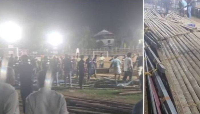 ടൂർണമെന്റിന്റെ ഫൈനൽ മത്സരം ആരംഭിക്കുന്നതിന് തൊട്ട് മുൻപായിരുന്നു അപകടം. മഴയിൽ താൽക്കാലിക ഗാലറിയുടെ കാലുകൾ മണ്ണിൽ പുതഞ്ഞതാണ് അപകട കാരണമെന്നാണ് നിഗമനം. കവുങ്ങിന്റെ തടികൊണ്ട് നിർമ്മിച്ച താൽക്കാലിക ഗാലറിയാണ് തകർന്നത്. അപകടം നടന്ന ഉടനെ തന്നെ രക്ഷാപ്രവര്ത്തനം നടത്താനായെന്നും ആരുടെയും പരിക്ക് ഗുരുതരമല്ലെന്നും ക്ലബ് അധികൃതര് ഇന്നലെ അറിയിച്ചിരുന്നു.