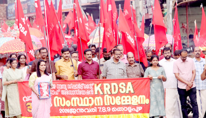 കേരള റവന്യു ഡിപ്പാർട്ട്മെന്റ് സ്റ്റാഫ് അസോസിയേഷൻ (കെആർഡിഎസ്എ) 36-ാം വാർഷിക സംസ്ഥാന സമ്മേളനത്തിന് ഉജ്വല തുടക്കം. റവന്യു വകുപ്പിന് ജനകീയമായ അഞ്ചു വർഷങ്ങൾ സമ്മാനിച്ച മൂവായിരത്തോളം ജീവനക്കാർ പങ്കെടുത്ത ഉജ്വല വിളംബര ജാഥ മങ്ങാട്ടു കവല ബസ് സ്റ്റാന്റ് പരിസരത്തുനിന്നും ഗാന്ധി സ്ക്വയറിലേക്ക് നടത്തി. വനിതകൾ ഉൾപ്പെടെ റവന്യു ജീവനക്കാർ അണിചേർന്നു. വാഴൂർ സോമൻ നഗറിൽ (മുനിസിപ്പൽ മൈതാനി) നടന്ന പൊതുസമ്മേളനം സിപിഐ സംസ്ഥാന എക്സിക്യൂട്ടീവ് അംഗം ടി ജെ ആഞ്ചലോസ് ഉദ്ഘാടനം ചെയ്തു. സ്വാഗത സംഘം ചെയർമാൻ കെ സലിംകുമാർ അധ്യക്ഷനായി. ജോയിന്റ് കൗൺസിൽ ചെയർമാൻ എസ് സജീവ്, മുൻ സംസ്ഥാന ട്രഷറർ എ സുരേഷ് കുമാർ, ജില്ലാ പ്രസിഡന്റ് കെ എസ് രാഗേഷ്, സിപിഐ മൂലമറ്റം മണ്ഡലം സെക്രട്ടറി സുനിൽ സെബാസ്റ്റ്യൻ തുടങ്ങിയവർ സംസാരിച്ചു. കെആർഡിഎസ്എ ജനറൽ സെക്രട്ടറി പി ശ്രീകുമാർ സ്വാഗതവും ഇടുക്കി ജില്ലാ പ്രസിഡന്റ് ആൻസ് ജോൺ നന്ദിയും പറഞ്ഞു. കലാ-കായിക മത്സരങ്ങളുടെ അവാർഡ് വിതരണം നടന്നു.