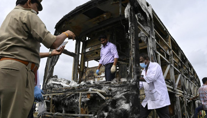 ബൈക്ക് നടുറോഡിലെത്തി അൽപ സമയത്തിനുശേഷം ഇതുവഴി എത്തിയ കാവേരി ട്രാവൽസിന്റെ ബസ് ബൈക്കിൽ ഇടിക്കുകയും, ഇതുമായി മുന്നോട്ട് നീങ്ങുകയും ചെയ്തു. 300 മീറ്ററോളം റോഡിൽ ഉരഞ്ഞ്, തീപ്പൊരി വന്നതോടെ ബൈക്കിന്റെ ഇന്ധന ടാങ്ക് പൊട്ടിത്തെറിച്ച് തീപടർന്നു. ബൈക്ക് അപടത്തിൽ പെടുമ്പോൾ അത് ഓടിച്ചിരുന്ന ശിവശങ്കർ തെറിച്ചുവീണത് ഡിവൈഡറിലേക്കാണ്. മദ്യലഹരിയിലായിരുന്നു അയാൾ. തലയിടിച്ചുവീണ ശിവശങ്കർ അപ്പോൾ തന്നെ മരിച്ചു. കൂടെയുണ്ടായിരുന്ന യെരിസ്വാമി ഡിവൈഡറിനു മുകളിലെ പുല്ലിലേക്ക് വീണതിനാൽ കാര്യമായ പരിക്കൊന്നും പറ്റിയില്ലെന്നും കുർനൂൽ ഡി.ഐ.ജി കെ. പ്രവീണിനെ ഉദ്ധരിച്ച് ഇന്ത്യൻ എക്സ്പ്രസ് റിപ്പോർട്ട് ചെയ്തു.
