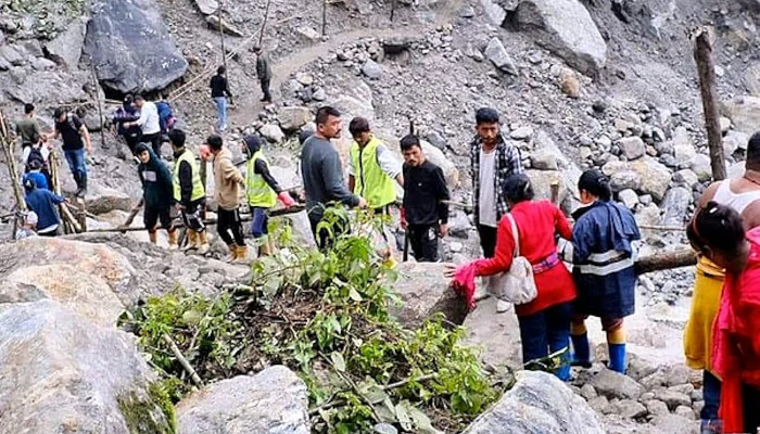 സിക്കിമിൽ വ്യാഴാഴ്ചയുണ്ടായ മണ്ണിടിച്ചിലിൽ ആയിരത്തോളം വിനോദസഞ്ചാരികൾ കുടുങ്ങിയതായി പൊലീസ്. പ്രദേശത്ത് മണ്ണിടിച്ചിലിനു ശേഷം കനത്ത മഴയുമുണ്ടായിട്ടുണ്ട്. ചുങ്താങ്ങിൽ ഏകദേശം 200 ടൂറിസ്റ്റ് വാഹനങ്ങൾ കുടുങ്ങിക്കിടക്കുകയാണെന്നും യാത്രക്കാർ അവിടെയുള്ള ഒരു ഗുരുദ്വാരയിൽ താമസിക്കുന്നുണ്ടെന്നും പൊലീസ് പറഞ്ഞു. സിക്കിം തലസ്ഥാനമായ ഗാങ്ടോക്കിൽ നിന്ന് ഏകദേശം 100 കിലോമീറ്റർ അകലെയാണ് ചുങ്താങ്.