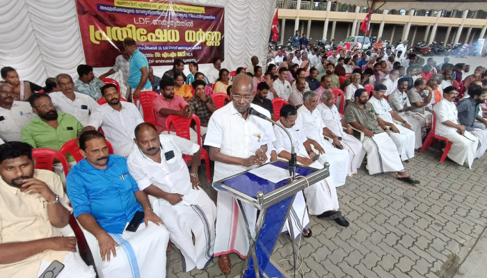 ക്രൂരമായ ഇസ്രയേല് അധിനിവേശത്തിനെതിരെ ലോകത്തെല്ലായിടത്തും പ്രതിഷേധം ഉയരുകയാണ്. യുദ്ധോപകരണങ്ങള് വിറ്റഴിക്കാനും സാമ്രാജ്യത്വ അധീശത്വം അരക്കിട്ടുറപ്പിക്കാനും അമേരിക്ക യുദ്ധവെറിയന്മാര്ക്ക് ഊര്ജം പകരുന്നു. ലക്ഷക്കണക്കിന് മലയാളികള് അധിവസിക്കുന്ന ഖത്തറിനെതിരായുള്ള ആക്രമണം ഒറ്റപ്പെട്ടതായി കാണാനാവില്ല. അമേരിക്കയും ഇസ്രയേലും നടത്തുന്ന സൈനികാക്രമണങ്ങള്ക്കെതിരെ ഇടതുപക്ഷം രാജ്യത്താകെ പ്രക്ഷോഭങ്ങൾ നടത്തുകയാണ്. ഇതിന്റെ ഭാഗമായാണ് ജില്ലയിലും ധർണ സംഘടിപ്പിച്ചത്. എല്ഡിഎഫ് നേതാക്കളായ മുഹമ്മദ് ഫൈസൽ, വി വി മത്തായി, ടി ആർ സോമൻ, ലിനു ജോസ്, ടി കെ ശിവൻനായര്, പി പി സുമേഷ്, ജോർജ് അഗസ്റ്റിൻ, അനിൽ കൂവപ്ലാക്കൽ, പോൾസൺ മാത്യു, കെ എം ജബ്ബാർ, ജിമ്മി മറ്റത്തിപ്പാറ, അനില് രാഘവൻ, ജോണ് തോട്ടം തുടങ്ങിയവർ സംസാരിച്ചു.