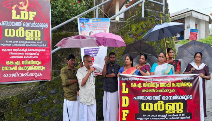 കോൺഗ്രസ് നേതൃത്വത്തിലുള്ള കുട്ടമ്പുഴ അഗ്രികൾച്ചറൽ റൂറൽ ഇപ്രൂവ്മെന്റ് സൊസൈറ്റിയിൽ നിന്നും നിക്ഷേപകരുടെ ലക്ഷക്കണക്കിന് രൂപ കണക്കില്ലാതെ തട്ടിയെടുത്തെന്ന ആരോപണ വിധേയരായ ബാങ്ക് പ്രസിഡന്റും ഗ്രാമ പഞ്ചായത്തംഗവുമായ കെ എ സിബി, സഹായിയായ കോൺഗ്രസ് കുട്ടമ്പുഴ മണ്ഡലം പ്രസിഡന്റും ഗ്രാമപഞ്ചായത്തംഗവുമായ ജോഷി പൊട്ടയ്ക്കൽ എന്നിവർ രാജിവെക്കണമെന്ന് ആവശ്യപ്പെട്ട് എൽഡിഎഫ് ഗ്രാമപഞ്ചായത്തംഗങ്ങൾ പഞ്ചായത്ത് ഓഫീസിനു മുന്നിൽ ധർണ നടത്തി. എൽ ഡി എഫ് മെമ്പർമാരായ ബിനേഷ് നാരായണൻ, ഗോപി ബെദറൻ, ഡെയ്സി ജോയി, മിനി മനോഹരൻ, ആലീസ് സിബി, ഷീല രാജീവ്, ശ്രീജ ബിജു എന്നിവരാണ് ധർണ്ണ നടത്തിയത്. ഗ്രാമപഞ്ചായത്തംഗവും സി പി ഐ കുട്ടമ്പുഴ ലോക്കൽ സെക്രട്ടറിയുമായ ഡെയ്സി ജോയി അദ്ധ്യക്ഷത വഹിച്ചു.