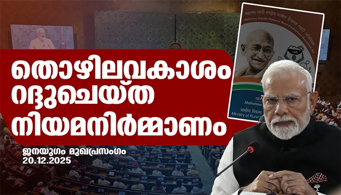 രണ്ടുപതിറ്റാണ്ടുകൾ പിന്നിട്ട ലോകത്തെതന്നെ ഏറ്റവും വലിയ തൊഴിലുറപ്പ് പദ്ധതി നരേന്ദ്ര മോഡി സർക്കാർ പാർലമെന്റിലെ തങ്ങളുടെ ഭൂരിപക്ഷത്തിന്റെ പിൻബലത്തിൽ റദ്ദുചെയ്തു. 2005ൽ മഹാത്മാ ഗാന്ധി ദേശീയ ഗ്രാമീണ തൊഴിലുറപ്പ് നിയമം പ്രാബല്യത്തില് വന്നതോടെ പ്രതിവർഷം 1,200 കോടി തൊഴിൽദിനങ്ങൾ സൃഷ്ടിക്കുക വഴി അഞ്ച് കോടി ഗ്രാമീണകുടുംബങ്ങൾക്ക് തൊഴിൽ ലഭ്യമാക്കാനായി. 1,10,000 കോടി രൂപ വേതനമായി ലഭ്യമാക്കാനും വികസന പ്രവർത്തനങ്ങൾക്ക് ഊർജം പകരാനും കഴിഞ്ഞ ഭാവനാപൂർവമായ ഒരു പദ്ധതിക്കാണ് ബിജെപി സർക്കാർ അന്ത്യം കുറിച്ചത്. ഇന്ത്യൻ ഭരണഘടനയുടെ അനുച്ഛേദം 21, പൗരന്മാരുടെ ജീവിക്കാനുള്ള അവകാശം ഉറപ്പുനൽകുന്നു. ജീവിക്കാനുള്ള അവകാശം അർത്ഥപൂർണമാകണമെങ്കിൽ അതിന് അനിവാര്യമായ ഉപജീവനമാർഗം കൂടി പ്രദാനംചെയ്യുന്ന സംവിധാനത്തെപ്പറ്റിയും കോൺസ്റ്റിറ്റുവെന്റ് അസംബ്ലി ചർച്ചകളിൽ ഉയർന്നിരുന്നു. അസംബ്ലിയിലെ സോഷ്യലിസ്റ്റ് ആശയഗതിക്കാർ തൊഴിലവകാശം ഒരു മൗലികാവകാശമായി ഭരണഘടനയിൽ ഉൾപ്പെടുത്തണമെന്ന അഭിപ്രായഗതിക്കാരായിരുന്നു. യാഥാസ്ഥിതിക പക്ഷം സ്വാഭാവികമായും അതിനെ എതിർത്തിരുന്നു. ഭരണഘടനയുടെ നിർദേശകതത്വങ്ങളിൽ, കോടതിയിലൂടെ നേടിയെടുക്കാൻ കഴിയാത്ത അവകാശമായി, തൊഴിലവകാശത്തെ ഉൾപ്പെടുത്തുകയാണ് അന്നുണ്ടായത്. എന്നാൽ പ്രായോഗികമായി തൊഴിലവകാശം അംഗീകരിക്കപ്പെട്ട് കിട്ടേണ്ടതിന് ഇന്ത്യക്ക് അരനൂറ്റാണ്ടിലേറെ കാത്തിരിക്കേണ്ടിവന്നു. 2026 ഫെബ്രുവരിയില് പ്രാവർത്തികമായ മഹാത്മാ ഗാന്ധി ഗ്രാമീണ തൊഴിലുറപ്പ് പദ്ധതി തൊഴിലില്ലായ്മയും വരുമാനരാഹിത്യവും മൂലം ജീവിതം ദുരിതപൂർണമായ വലിയൊരുവിഭാഗം ജനതയ്ക്ക് ഏറെ ആശ്വാസപ്രദവും ഗ്രാമീണ സമ്പദ്ഘടനയ്ക്ക് നവജീവൻ പകർന്ന നിയമനിർമ്മാണവും പദ്ധതിയും ആയിരുന്നു. ഡോ. മൻമോഹൻ സിങ് നേതൃത്വം നൽകിയ ഒന്നാം യുപിഎ സർക്കാരിൽ നിർണായക സ്വാധീനം ചെലുത്തിയിരുന്ന ഇടതുപക്ഷ പാർട്ടികൾ ആ നിയമനിർമ്മാണ പ്രക്രിയയിൽ സുപ്രധാന പങ്കവഹിക്കുകയുണ്ടായി. യുപിഎ സർക്കാരിന് ഇടതുപക്ഷം നൽകിയ പിന്തുണ പിൻവലിച്ചതോടെ സുഗമമായ നടത്തിപ്പിൽ ഉദാസീനത പ്രത്യക്ഷപ്പെട്ടുതുടങ്ങിയെങ്കിലും പദ്ധതി ഏറെ ജനോപകാരപ്രദമായി തുടർന്നുപോന്നിരുന്നു. നരേന്ദ്ര മോഡി സർക്കാരിന്റെ കഴിഞ്ഞ ഒരു ദശകത്തിലേറെ നീണ്ട ഭരണം തൊഴിലുറപ്പുപദ്ധതിയെ സാവധാനത്തിൽ അവസാനിപ്പിക്കുകയെന്ന ദിശയിലേക്കാണ് നീങ്ങിയിരുന്നത്.