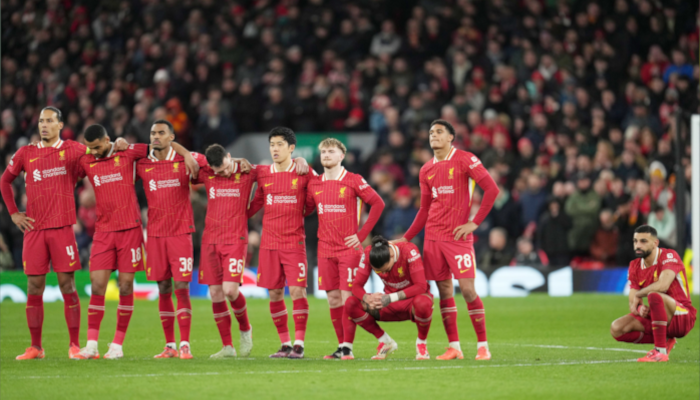 ആൻഫീൽഡിൽ നടന്ന പോരാട്ടത്തിൽ പെനാൽറ്റി ഷൂട്ടൗട്ടിലൂടെയായിരുന്നു പിഎസ്ജി വിജയം സ്വന്തമാക്കിയത്. ആദ്യ പാദത്തിൽ ഒരു ഗോളിന് പിന്നിൽ നിന്ന പിഎസ്ജി രണ്ടാം പാദത്തിൽ ഒരു ഗോൾ തിരിച്ചടിച്ച് സമനിലയായതോടെയാണ് മത്സരം ഷൂട്ടൗട്ടിലേക്ക് നീങ്ങിയത്. പെനാൽറ്റി ഷൂട്ടൗട്ടിൽ 1–4 എന്ന സ്കോറിനാണ് ചെമ്പടയെ പിഎസ്ജി വീഴ്ത്തിയത്. 12-ാം മിനിറ്റിൽ ഡെംബലെയാണ് പിഎസ്ജിക്കായി വല കുലുക്കിയത്. ഗോൾ വീണതോടെ ആക്രമണം ശക്തമാക്കിയ ചെമ്പട പിഎസ്ജി ബോക്സിലേക്ക് ഇരമ്പിയെത്തി. എന്നാൽ നിർഭാഗ്യം ഇംഗ്ലീഷ് ക്ലബ്ബിനെ വേട്ടയാടി. മറുഭാഗത്ത് ലഭിച്ച അവസരങ്ങളിൽ എതിർബോക്സിലേക്ക് ഫ്രഞ്ച് ക്ലബ്ബും മുന്നേറിയതോടെ അവസാനനിമിഷം മത്സരം ആവേശമായി. എന്നാൽ മുഴുവൻ സമയവും എക്സ്ട്രാ ടൈമിലും ഇരുടീമുകളും സമനില പാലിച്ചതോടെ മത്സരം ഷൂട്ടൗട്ടിലേക്ക് നീങ്ങി. പിഎസ്ജിക്കായി കിക്കെടുത്ത വിറ്റീഞ്ഞ, ഗോൺസാലോ റാമോസ്, ഡെംബലെ, ഡിസൈർ ഡോയി എന്നിവർ വലകുലുക്കി. എന്നാൽ ലിവർപൂളിന്റെ ഡാർവിൻ ന്യൂനസ്, കർട്ടിസ് ജോൺസ് എന്നിവരുടെ ഷോട്ട് ഫുൾലെങ്ത് ഡൈവിലൂടെ തട്ടിയകറ്റി ഇറ്റാലിയൻ ഗോൾകീപ്പർ പിഎസ്ജിയുടെ രക്ഷകനായി. ഒടുവിൽ 4–1ന് ഷൂട്ടൗട്ട് ജയിച്ച് ക്വാർട്ടറിലേക്ക് മാർച്ച് ചെയ്തു.