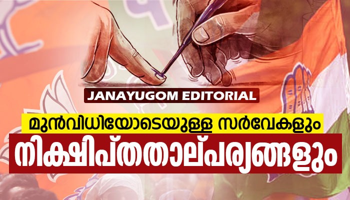 മോഡിയുടെ തെരുവ് പ്രദർശനങ്ങൾകൊണ്ടോ ബിജെപിയുടെ അഴിമതിക്കറപുരണ്ട പണക്കൊഴുപ്പുകൊണ്ടോ കേരളത്തിൽ രണ്ടക്ക നേട്ടം ഉണ്ടാക്കുമെന്ന അവകാശവാദം പോയിട്ട് കഴിഞ്ഞ ലോക്സഭാ തെരഞ്ഞെടുപ്പിലെ വോട്ടുനില നിലനിർത്താൻപോലും അവർക്ക് കഴിയില്ല എന്നതാണ് വസ്തുത. അത് മറ്റാരെക്കാളും നന്നായി അറിയുന്നത് കേരളത്തിലെ ബിജെപി നേതൃത്വവും പ്രവർത്തകരുമാണ്. മോഡി സ്വേച്ഛാധിപത്യത്തിനുകീഴിൽ കേവലം ചൂതാട്ടക്കരുക്കളാണ് തങ്ങളെന്നും അവർക്കറിയാം. കേരളത്തിന്റെ രാഷ്ട്രീയ യാഥാർത്ഥ്യം ഇതായിരിക്കെ സർവേകളും അവയുടെ ഫലപ്രഖ്യാപനങ്ങളുമായി വന്നവരും വരാനിരിക്കുന്നവരുമായ എല്ലാ തെരഞ്ഞെടുപ്പ് വിശകലന പണ്ഡിതർക്കുമെതിരെ ജനാധിപത്യ വിശ്വാസികൾ ജാഗ്രത പുലർത്തണം. വിട്ടുവീഴ്ചയില്ലാത്ത ജാഗ്രതയും തളരാത്ത കഠിനാധ്വാനവുമാണ് ജനാധിപത്യത്തിന്റെ ആത്യന്തിക വിജയത്തിലേക്കുള്ള രാജപാത.