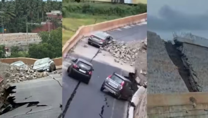 മലപ്പുറത്ത് ദേശീയപാത ഇടിഞ്ഞ് തകര്‍ന്നു; ഓടിക്കൊണ്ടിരുന്ന കാറുകള്‍ അപകടത്തില്‍പ്പെട്ടു