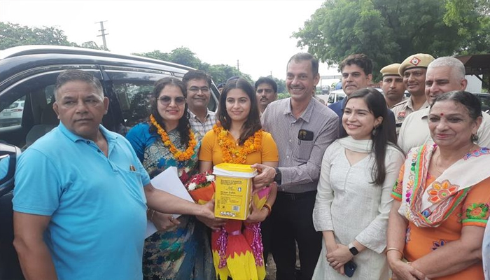 മനു ഭാക്കറിനെ സ്വാഗതം ചെയ്യുന്ന ചടങ്ങില് റോഹ്തക് എംപി ദീപേന്ദര് ഹൂഡ,ജാജര് എംഎല്എ ഗീത ഭുക്കല് എന്നിവരും സന്നിഹിതരായിരുന്നു.