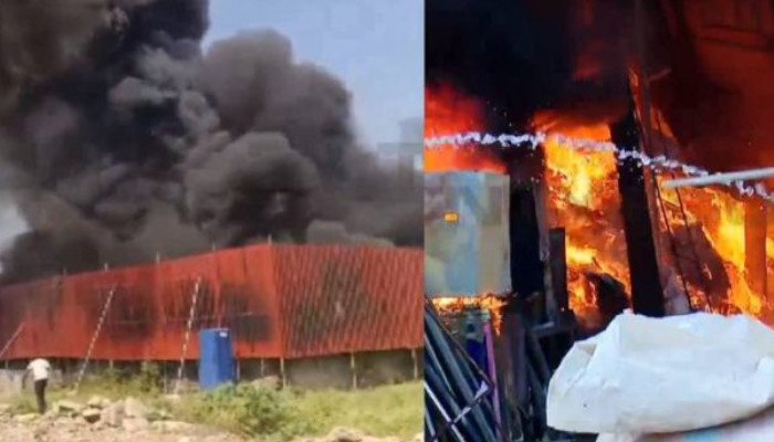 വലിയ കറുത്ത പുകയാണ് സംഭവ സ്ഥലത്ത് നിന്ന് ഉയരുന്നത്. വെൽഡിങ്ങിനിടെയുണ്ടായ തീപിടുത്തമെന്നാണ് ലഭിക്കുന്ന വിവരം. സ്ഥലത്തുണ്ടായിരുന്ന തെങ്ങുകൾ ഉൾപ്പെടെ പൂർണമായി കത്തിനശിച്ചു. തീപിടുത്തത്തിൽ ഷെഡ്ഡിന്റെ ഒരു ഭാഗം തകർന്ന് വീണു. ഒരു മണിക്കൂർ മുൻപാണ് തീപിടുത്തം ഉണ്ടായത്. ഇലക്ട്രോണിക് സാധനങ്ങൾ ഉൾപ്പെടെയുള്ളതിനാൽ തീ വേഗം പടരുകയാണ്. സമീപത്ത് വീടുകളുണ്ട്. നാട്ടുകാർ ഉൾപ്പെടെ രക്ഷാപ്രവർത്തനത്തിൽ ഏർപ്പെട്ടിട്ടുണ്ട്.