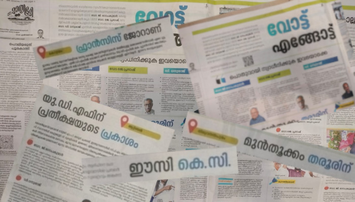 യുഡിഎഫിനോടുള്ള പ്രേമം തുറന്നുപറഞ്ഞ് മാതൃഭൂമി ദിനപത്രം. വോട്ട് എങ്ങോട്ട് എന്ന തലക്കെട്ടില് ഇന്ന് ആറ്, ഏഴ് പേജുകളിലായി പ്രസിദ്ധീകരിച്ച അവലോകനങ്ങള് യുഡിഎഫിന്റെ പെയ്ഡ് ന്യൂസിന് സമാനമാണ്. വോട്ടര്മാരെ സ്വാധീനിക്കുന്നത് എന്തൊക്കെയാണെന്ന് ഡോ. ജി ഗോപകുമാര്, ഡോ. ജെ പ്രഭാഷ്, ഡോ. ഡി ധനുരാജ് എന്നിവരുടെ വിലയിരുത്തലുകളെന്ന പേരിലാണ് മാതൃഭൂമി പ്രസിദ്ധീകരിച്ചത്. ആദ്യഘട്ടത്തില് തിരുവനന്തപുരം, ആറ്റിങ്ങല്, കൊല്ലം, ആലപ്പുഴ, മാവേലിക്കര, കോട്ടയം, പത്തനംതിട്ട എന്നീ മണ്ഡലങ്ങളുടെ അവലോകനമാണ് തയ്യാറാക്കിയത്. ഓരോ മണ്ഡലങ്ങളെക്കുറിച്ചുള്ള വിലയിരുത്തലുകള്ക്കും നല്കിയ തലക്കെട്ടുകള് മുഴുവന് യുഡിഎഫിന് അനുകൂലമായി ചിന്തിപ്പിക്കാന് പ്രേരിപ്പിക്കുന്ന തരത്തിലാണ്. ‘മുന്തൂക്കം തരൂരിന്’ എന്ന് തിരുവനന്തപുരത്തിനെക്കുറിച്ച് നേരിട്ട് പ്രഖ്യാപിച്ചപ്പോള്, യുഡിഎഫിന് പ്രതീക്ഷയുടെ ‘പ്രകാശം’ എന്നാണ് ആറ്റിങ്ങലിനെക്കുറിച്ചുള്ള വിലയിരുത്തല്. സ്ഥാനാര്ത്ഥിയുടെ പേരിന് പ്രാധാന്യം നല്കുന്ന തലക്കെട്ടാണിത്.