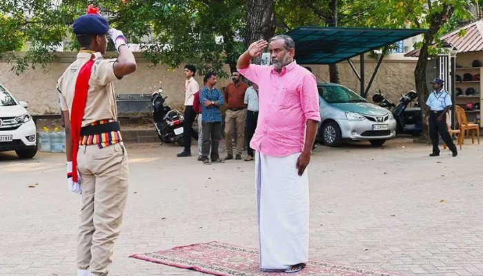 സ്കൂൾ വാർഷികാഘോഷത്തിൽ പങ്കെടുക്കാനെത്തിയ കൃഷിവകുപ്പുമന്ത്രി പി പ്രസാദിനെ സല്യൂട്ട് നൽകി സ്വീകരിച്ച് മകൻ. തിരുവനന്തപുരം സെന്റ് ജോസഫ് സ്കൂൾ വാർഷികാഘോഷത്തിൽ പങ്കെടുക്കാനെത്തിയപ്പോഴാണ് മന്ത്രിക്ക് മകന്റെ സ്വീകരണം ലഭിച്ചത്. ഇതേ സ്കൂളിലെ സ്റ്റുഡന്റ് പൊലീസ് കേഡറ്റ് പ്ലറ്റൂൺ കമാണ്ടർ കൂടിയാണ് മന്തിയുടെ മകൻ ഭഗത് പ്രസാദ്.