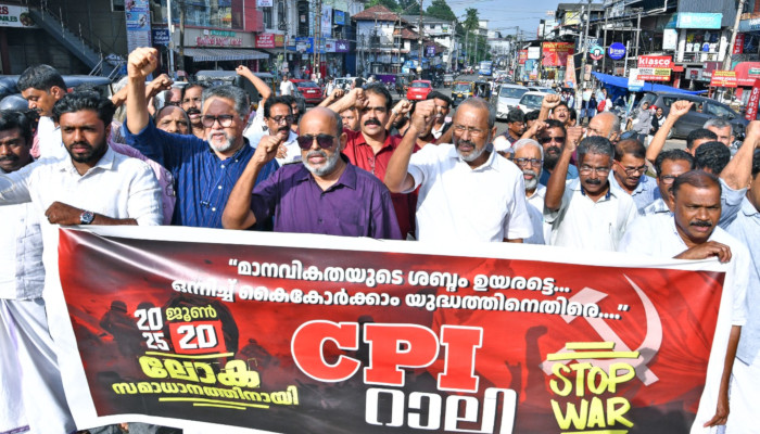 ആയുധ കച്ചവടക്കാര്ക്കും യുദ്ധക്കൊതിയന്മാര്ക്കുമൊപ്പമാണ് കേന്ദ്ര സര്ക്കാരെന്നും അദ്ദേഹം കൂട്ടിചേര്ത്തു. മാനവികതയുടെ ശബ്ദം ഉയരട്ടെ ഒന്നിച്ച് കൈകോര്ക്കാം യുദ്ധത്തിനെതിരെ എന്ന മുദ്രാവാക്യമുയര്ത്തി മലപ്പുറം ടൗണില് നടന്ന റാലിയില് നിരവധി പേര് പങ്കാളിയായി. യുദ്ധ വിരുദ്ധ കൂട്ടായ്മയില് സിപിഐ ജില്ല സെക്രട്ടറി പി കെ കൃഷ്ണദാസ്, സംസ്ഥാന കൗണ്സില് അംഗം അജിത് കൊളാടി, ജില്ല അസി. സെക്രട്ടറി ഇ സെയ്തലവി, മണ്ഡലം സെക്രട്ടറി മുസ്തഫ കൂത്രാടന് എന്നിവര് സംസാരിച്ചു. ജില്ല എക്സിക്യൂട്ടീവ് അംഗങ്ങളായ സി എച്ച് നൗഷാദ്, പി ടി ഷറഫുദ്ദീന്, കെ പുരം സദാനന്ദന് എന്നിവര് നേതൃത്വം നല്കി.