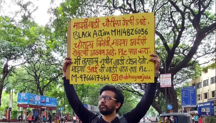 “എന്റെ കറുത്ത Activa MH14BZ6036 ദസറയിൽ മോഷ്ടിക്കപ്പെട്ടു, ഇത് എന്റെ അമ്മയുടെ അവസാനത്തെ ഓർമ്മയാണ്. അത് കണ്ടെത്താൻ എന്നെ സഹായിക്കൂ,”, അഭയ് പോസ്റ്റില് പങ്കുവച്ചു. മറാത്തി ഭാഷയിലാണ് ചൗഗുലെ തന്റെ കഥ സോഷ്യൽ മീഡിയയിൽ പങ്കുവെച്ചത്. അമ്മയുടെ സ്കൂട്ടർ തിരിച്ചുനൽകിയാൽ പുതിയ ഇരുചക്ര വാഹനം വാങ്ങി നൽകാമെന്നും അഭയ് ചൗഗുലെ വാഗ്ദാനം ചെയ്തു.