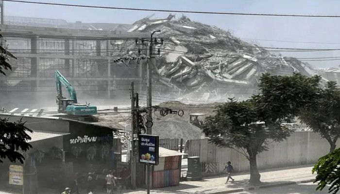 അയൽരാജ്യമായ തായ്ലൻഡിലെ നൂറുകണക്കിന് കെട്ടിടങ്ങൾക്കും കേടുപാടുകൾ സംഭവിച്ചിട്ടുണ്ട്. തകർന്ന 33 നില ടവറിന്റെ അവശിഷ്ടങ്ങൾക്കിടയിൽ കുടുങ്ങിയ നിർമ്മാണ തൊഴിലാളികളെ കണ്ടെത്താനുള്ള രക്ഷാപ്രവർത്തനം തുടരുന്നു. ബാങ്കോക്കിൽ 101 പേരെ കാണാതായെന്ന് തായ് അധികൃതർ അറിയിച്ചു.