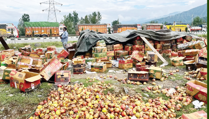 ഇതിനിടെ ട്രക്കുകളില് നിന്നും ചീഞ്ഞളിഞ്ഞ ആപ്പിളുകള് പുറത്ത് കൂട്ടിയിടുന്ന ദൃശ്യങ്ങള് പുറത്തുവന്നിരുന്നു. കോള്ഡ് സ്റ്റേറേജുകളുടെ അപര്യാപ്തതയാണ് ഇത്രയധികം ആപ്പിളുകള് ചീഞ്ഞടിയാന് കാരണമാകുന്നതെന്നാണ് വിലയിരുത്തല്. ദൃശ്യങ്ങള് പുറത്തുവന്നതോടെ വന്പ്രതിഷേധമാണ് കര്ഷകരുടെ ഭാഗത്തുനിന്നും ഉയര്ന്നുവരുന്നത്. കശ്മീരിലുടനീളം ആപ്പിള് കര്ഷകര് പ്രതിഷേധം സംഘടിപ്പിച്ചു. ദേശീയ പാതാ നിര്മ്മാണം സൈന്യത്തിന് വിട്ടുകൊടുക്കണമെന്ന് കര്ഷകര് ആവശ്യപ്പെട്ടു.