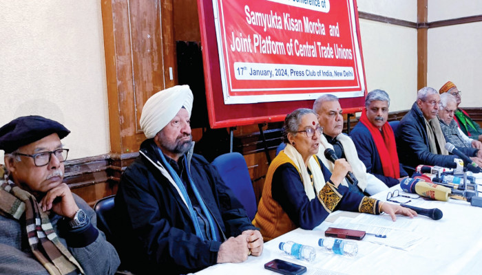 രാജ്യത്തെ കര്ഷകരുടെ കൃഷിഭൂമി തട്ടിയെടുക്കുന്നതിനും വിള ഉല്പാദനത്തിന്റെയും ഭക്ഷ്യ വിതരണ ശൃംഖലയുടെയും നിയന്ത്രണം ഏറ്റെടുക്കാനും കുത്തകകൾക്ക് ലാഭമുണ്ടാക്കാനും വേണ്ടിയുള്ള നയങ്ങളും നിയമങ്ങളുമാണ് കേന്ദ്രസര്ക്കാര് ആവിഷ്കരിക്കുകയും നടപ്പാക്കുകയും ചെയ്തുകൊണ്ടിരിക്കുന്നതെന്ന് തൊഴിലാളി സംഘടനകള് ചൂണ്ടിക്കാട്ടി. ദേശീയ ആസ്തികളടക്കം സ്വകാര്യ കോർപറേറ്റുകൾക്ക് തട്ടിയെടുക്കാന് അവസരമൊരുക്കുന്നു. ജനാധിപത്യ സ്ഥാപനങ്ങള് കൈപ്പിടിയിലൊതുക്കിയും ഭരണാധികാരികളെയും ഏജൻസികളെയും ദുരുപയോഗം ചെയ്തും വിയോജിപ്പിന്റെ എല്ലാ ശബ്ദങ്ങളെയും ഈ കൂട്ടുകെട്ട് അടിച്ചമർത്തുകയാണെന്ന് അമര്ജീത് കൗര് പറഞ്ഞു.
