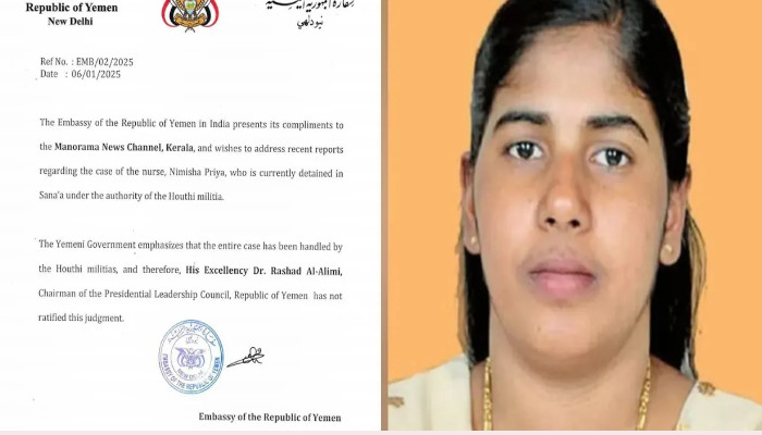 യെമൻ പൗരനെ കൊലപ്പെടുത്തിയ കേസിൽ മലയാളി നഴ്സ് നിമിഷപ്രിയയുടെ വധശിക്ഷ യെമന് പ്രസിഡന്റ് റഷദ് അൽ അലിമി അംഗീകരിച്ചെന്ന മാധ്യമ റിപ്പോർട്ടുകൾ തള്ളി യെമൻ എംബസി. വധശിക്ഷാ ഉത്തരവ് പ്രസിഡൻ്റ് അൽ-അലിമി ശരിവച്ചതായി റിപ്പോർട്ടുകൾ പുറത്തുവന്നതിന് പിന്നാലെയാണ് എംബസിയുടെ വിശദീകരണം. ഹൂതി സുപ്രീം പൊളിറ്റിക്കൽ കൗൺസിൽ നേതാവ് മെഹ്ദി അൽ മഷാദ് ആണ് വധശിക്ഷ അംഗീകരിച്ചത്. ഇദ്ദേഹത്തെ വിമത പ്രസിഡന്റ് എന്നാണ് വിശേഷിപ്പിക്കുന്നത്.