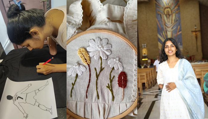 മൂന്ന് വർഷം മുമ്പാണ് അഞ്ജന തന്നെ അടുത്തറിയുന്ന ആൽവിനെ വിവാഹം കഴിക്കുന്നത്. ജോലിയും വരുമാനവും ഒരു സ്വപ്നം ആയിരുന്നതിനാൽ എന്തെങ്കിലും ചെയ്യണം എന്ന ആഗ്രഹം മനസിൽ ഉണ്ടായിരുന്നു. തുടർന്നു ഒരു സ്വകാര്യ കമ്പനിയിൽ കസ്റ്റമർ റിലേഷൻ മാനേജറായി ജോലിക്ക് കയറി. എങ്കിലും മനസിന് തൃപ്തി നൽകാത്തതിനാൽ ആ ജോലിയും വേണ്ടന്ന് വച്ചു. തന്റെ പരിമിതികളെപ്പറ്റി ആലോചിക്കുവാൻ തുടങ്ങിയതോടെ മനസിന്റെ ധൈര്യം അൽപ്പാൽപ്പമായി ചോരുകയായിരുന്നു. ഭർത്താവ് ആൽവിൻ നൽകിയ ആത്മവിശ്വാസമാണ് അഞ്ജനക്ക് പിന്നീട് കരുത്തായത്. പലപ്പോഴും മാനസികമായി വിഷമങ്ങൾ അഞ്ജനയെ അലട്ടാൻ തുടങ്ങി. പുതിയ ഒരു ജോലിക്ക് വേണ്ടിയുള്ള നീണ്ട ഒരു കാത്തിരിപ്പിലായിരുന്നു അഞ്ജന അപ്പോഴും. ഇതിനിടയിലെപ്പോഴോ ആണ് ഭർത്താവ് ആൽവിന്റെ സുഹൃത്തിന്റെ കുഞ്ഞിന്റെ ഉടുപ്പിൽ ഒരു പൂവിന്റെ എംബ്രോയഡറി വർക്ക് അഞ്ജന കാണുന്നത്. അതുപോലെ ഒന്ന് തുന്നി ചേർക്കാൻ ആഗ്രഹം തോന്നിയതോടെ ഒരു തുണിയിൽ ഒരു പൂവ് സ്വന്തമായി വർണ നൂലിഴകളാൽ തുന്നി ചേർത്തു. ശേഷം അമ്മയെ കാണിച്ചപ്പോൾ അമ്മക്കും ഇഷ്ടമായി. ഇതോടെ കൂടുതൽ എംബ്രോയഡറി വർക്കുകൾ ചെയ്യാൻ ആരംഭിച്ചു. ഇതായിരുന്നു അഞ്ജനയുടെ ജീവിതമാകെ മാറ്റി മറിക്കുന്നത്.