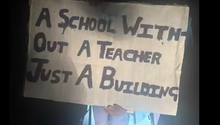 ഭൂമിശാസ്ത്ര, രാഷ്ട്രമീമാംസ വിദ്യാർത്ഥിനികൾക്ക് അധ്യാപകരെ ഉടൻ നിയമിക്കണമെന്ന് ആവശ്യപ്പെട്ട് കെജിബിവിയിലെ 12, 11 ക്ലാസുകളിലെ വിദ്യാർത്ഥികളാണ് മാർച്ച് നയിച്ചത്. “അധ്യാപകനില്ലാത്ത സ്കൂൾ വെറും ഒരു കെട്ടിടം മാത്രമാണ്” എന്നെഴുതിയ പോസ്റ്ററുകളുമായാണ് വിദ്യാർത്ഥികൾ പ്രതിഷേധിച്ചത്. സ്കൂൾ യൂണിഫോം ധരിച്ച പെൺകുട്ടികൾ റോഡിൽ മാർച്ച് നടത്തി പ്രതിഷേധിച്ച് മുദ്രാവാക്യം വിളിച്ചു. അധ്യാപകരെ ആവശ്യമുണ്ടെന്ന് ആവർത്തിച്ച് സ്കൂൾ അധികൃതരെ അറിയിച്ചപ്പോൾ ഹോസ്റ്റൽ വാർഡനുമായോ സ്കൂൾ അധികൃതരുമായോ യാതൊരു ബന്ധവും ഉണ്ടായിരുന്നില്ല എന്ന് അവർ പറഞ്ഞു.