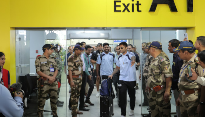 പ്രത്യേക ചാർട്ടേഡ് വിമാനത്തിലാണ് ഇരു ടീമിലെയും താരങ്ങളും പരിശീലകരും എത്തിയത്. കേരള ക്രിക്കറ്റ് അസോസിയേഷൻ (കെ.സി.എ) ട്രഷറർ ടി. അജിത്ത് കുമാറിന്റെ നേതൃത്വത്തിലുള്ള സംഘം താരങ്ങളെ വിമാനത്താവളത്തിൽ ഔദ്യോഗികമായി സ്വീകരിച്ചു. പ്രിയതാരങ്ങളെ ഒരു നോക്ക് കാണാൻ നിരവധി ആരാധകരാണ് വിമാനത്താവള പരിസരത്ത് തടിച്ചുകൂടിയിരുന്നത്. ആവേശഭരിതരായ കായികപ്രേമികളുടെ ഹർഷാരവങ്ങൾക്കിടയിലൂടെ കനത്ത സുരക്ഷാ വലയത്തിലാണ് താരങ്ങളെ പുറത്തേക്ക് എത്തിച്ചത്. ടീമുകളുടെ സന്ദർശനം പ്രമാണിച്ച് വിമാനത്താവളം മുതൽ ഹോട്ടലുകൾ വരെയും സ്റ്റേഡിയം പരിസരത്തും കനത്ത പൊലീസ് കാവലാണ് ഏർപ്പെടുത്തിയിരിക്കുന്നത്.