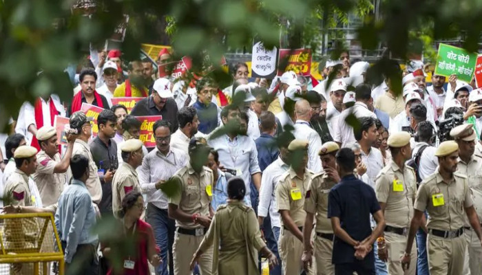 ഡിജിറ്റല് വോട്ടര്പട്ടിക കൈമാറാതെയും വീഡിയോ തെളിവുകള് 45 ദിവസത്തിനകം നശിപ്പിക്കണമെന്ന സര്ക്കുലറിറക്കിയും കമ്മിഷന് ബിജെപിക്ക് ഒത്താശചെയ്യുന്നെന്നാണ് രാഹുലിന്റെ ആരോപണത്തിനും കമ്മിഷന് ഉത്തരംനല്കിയില്ല. ഈ സാഹചര്യത്തിലാണ് ജനങ്ങളെ പങ്കെടുപ്പിച്ചുകൊണ്ടുള്ള ക്യാംപയിന് ശക്തമാക്കാന് കോണ്ഗ്രസും ഇന്ത്യാ സഖ്യവും തീരുമാനിച്ചത്. വിഷയമുയര്ത്തി രാഷ്ട്രീയപ്രചാരണം ശക്തിപ്പെടുത്തുന്നതിന്റെ ഭാഗമായാണ് തിരഞ്ഞെടുപ്പ് കമ്മിഷന് ആസ്ഥാനത്തേക്ക് പ്രതിപക്ഷപാര്ട്ടികളുടെ എംപിമാര് പ്രതിഷേധമാര്ച്ച് നടത്തുന്നത്.