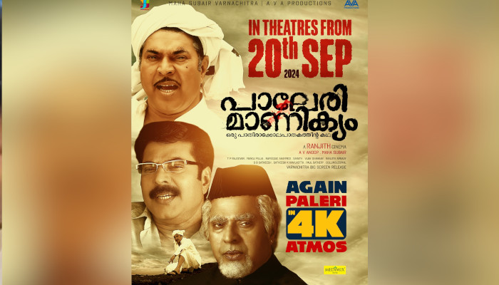 മമ്മൂട്ടി ത്രിബിൾ റോളിൽ അഭിനയിച്ച് ഗംഭീരമാക്കി വൻ വിജയം നേടിയ, രഞ്ജിത്ത് സംവിധാനം ചെയ്ത ” പലേരി മാണിക്യം” സെപ്റ്റംബർ ഇരുപതിന് പ്രദർശനത്തിനെത്തുന്നു.സിനിമയുടെ ഏറ്റവും പുതിയശബ്ദ സാങ്കേതിക മികവോടെ 4k അറ്റ്മോസിലാണ് അവതരിപ്പിക്കുന്നത്.