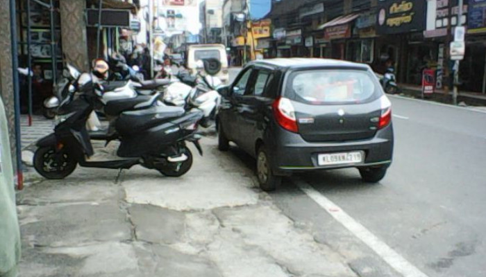 നഗരത്തിലെ നടപ്പാതകളിൽ കാൽനടയാത്രക്കാർക്ക് സുരക്ഷിതമായി നടക്കുന്നതിനായി അടുത്തകാലത്ത് നടപ്പാതകൾ നവീകരണം നടത്തി ടൈലുകൾ പാകിയിട്ടുണ്ടെങ്കിലും ഇത്തരം നടപ്പാതകളിലെ വാഹന പാർക്കിംഗ് കാൽനടയാത്രക്കാർക്ക് കീറാമുട്ടിയാവുകയാണ്.