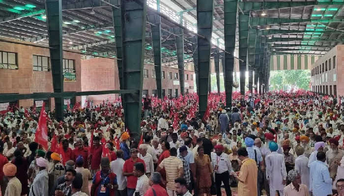 കേന്ദ്രീകരിച്ച പ്രകടനമായിരുന്നില്ല, വിവിധ പ്രദേശങ്ങളിൽ നിന്ന് ഏർപ്പെടുത്തിയ വാഹനങ്ങളിലും കിട്ടിയ ബസുകളിലും നടന്നും സഞ്ചരിച്ചെത്തിയ പ്രവർത്തകർ പഞ്ചാബ് മണ്ഡി ബോർഡിന് സമീപത്തെ ഹാളിലേക്ക് ഒഴുകുന്നു. പലരും ട്രാക്ടറുകളില് റാലി സ്ഥലത്തേക്ക് എത്തുന്നു. ഒരു കയ്യിൽ ചെങ്കൊടി പിടിച്ച് മുഷ്ടി ചുരുട്ടി തൊണ്ടപൊട്ടുമാറുച്ചത്തിൽ മുദ്രാവാക്യങ്ങൾ വിളിച്ചും പാട്ടുകൾ പാടിയും കൊച്ചുകൊച്ചു കൂട്ടങ്ങളായെത്തി ജനമഹാസമുദ്രമായി ഹാളിലും പരിസരങ്ങളിലുമായവർ ചുവപ്പായിരമ്പി.
